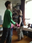 after breakfast we got all our lovely sparkly bits, florist Oasis and other bits out of the car along with the bunches of holly and other randomly green or pretty bits we have cut from random bushes in the forest fields and plains around and about and also from Nana’s Garden.