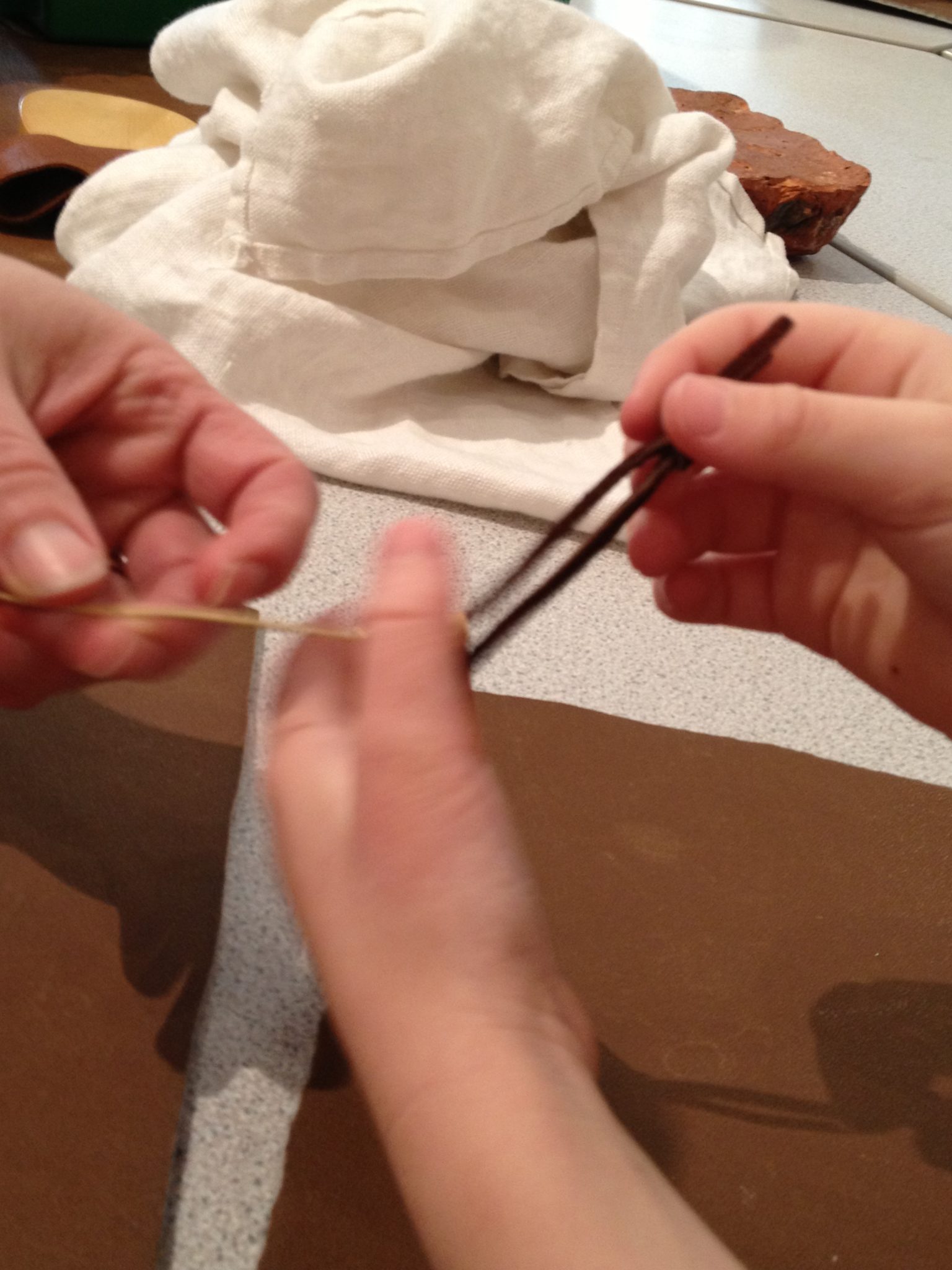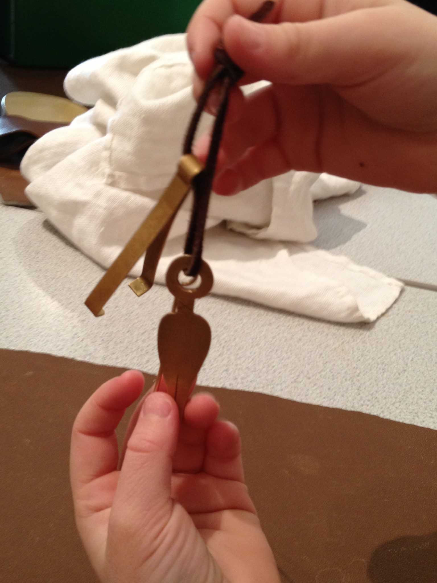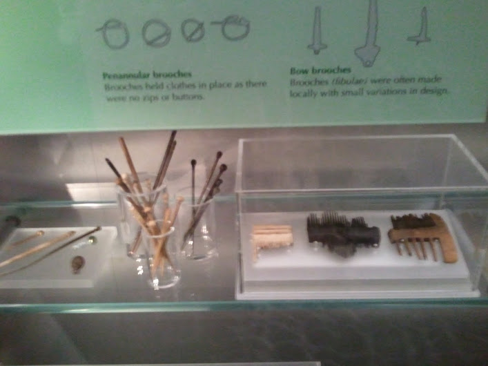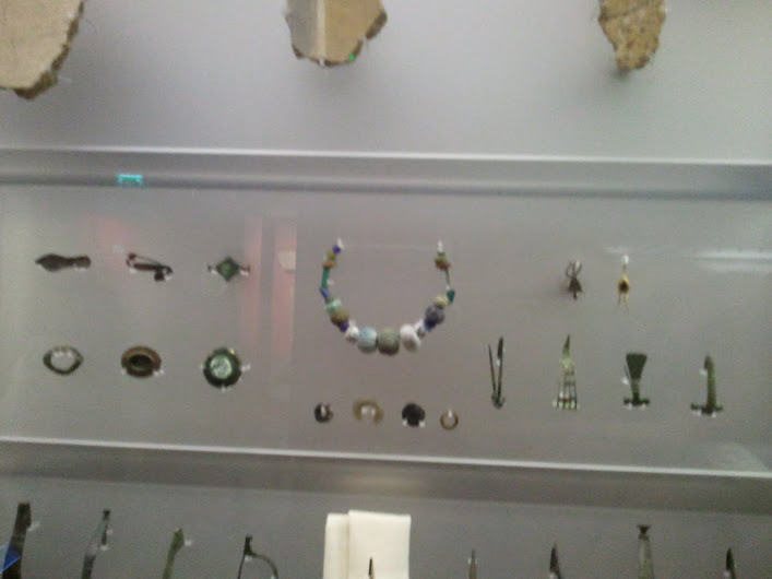 These Items I found Particularly Interesting as it consisted of a pair of Tweezers a small Brass scoop and a couple of other pieces strung together on a piece of leather. these I found interesting because we had also seen these Items in the Salisbury and South Wiltshire Museum as well as pictures in the books they read about Romans when we were covering the Romans a couple of years ago. The most interesting part was finally finding out what it was that they were used for the tweezers I just asummed would have been used for removal of splinters and such not really thinking that removal of hair would be that much of an essential to the Romans but in fact they were used for just that the woman used it for the removal of hair (lip, arm pits arms and legs) and men for the nose hair and ear hair. The little Scoop was for cleaning out their ears! Erm no thank you lol.