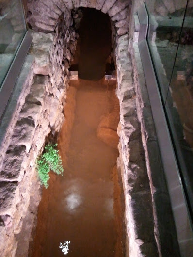 just before you leave this section and go out to the Baths you can seen the Drain system. (left Hand Dec 2012 Right July 2011) and the far Right is the Sacred Spring overflow.