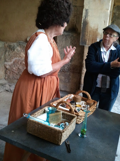 These show Jessica with the glass jar and also with a large muslin sheet which would have been what the Romans would have used as a towel.