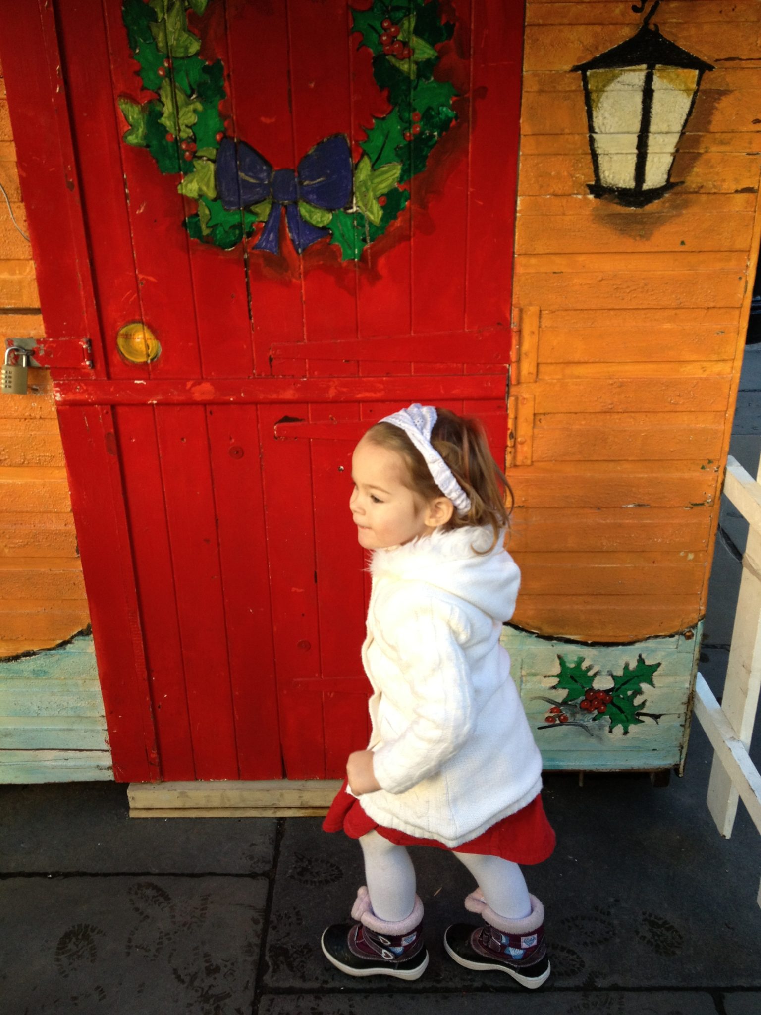 Emily all excited because she had found Santa’s house after running around that for a while she went in search of Jessica and chased Jessica back to see Santa’s house.