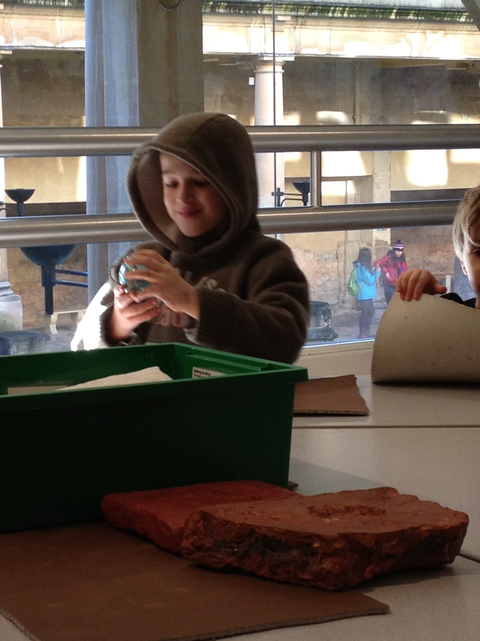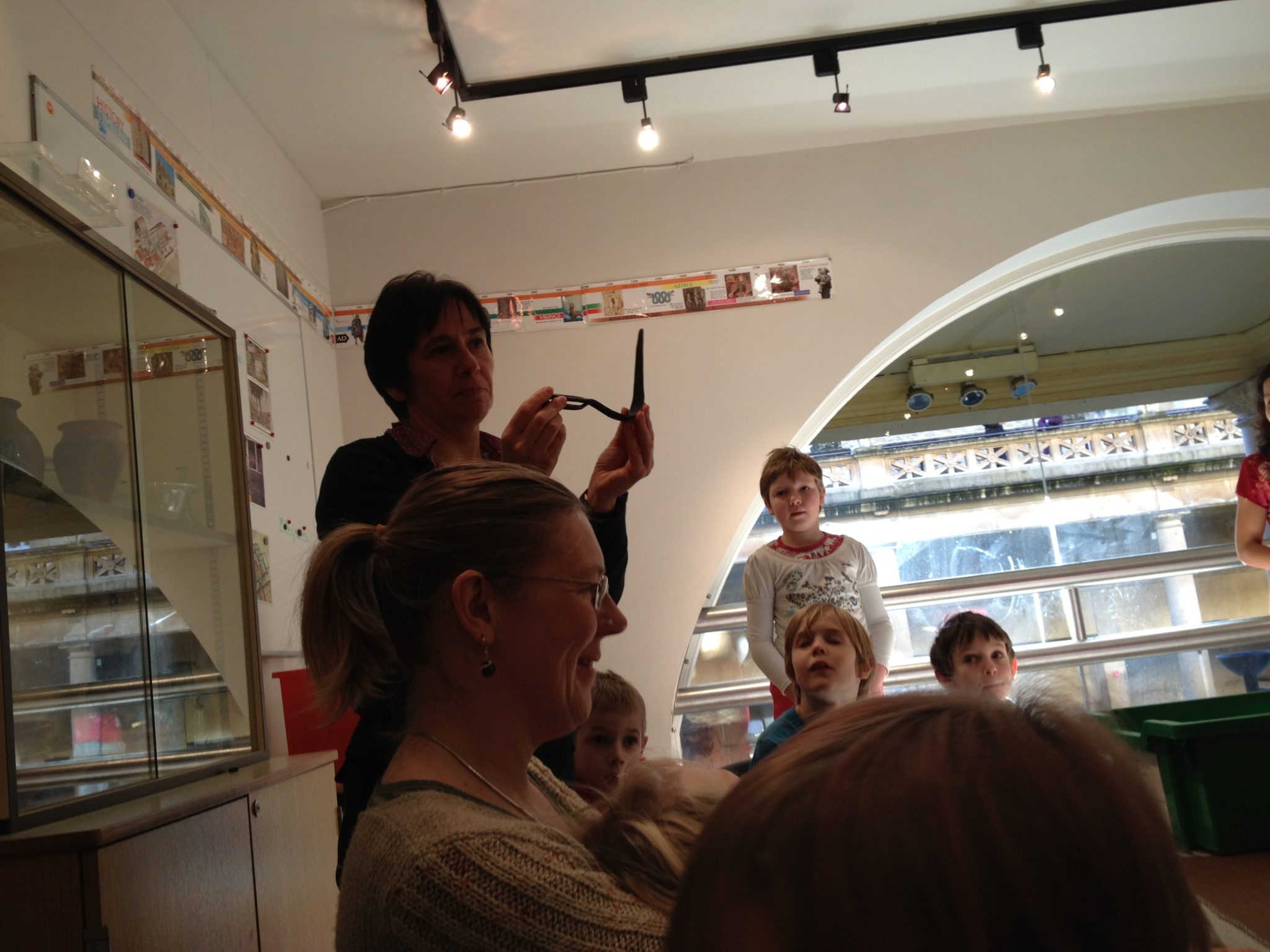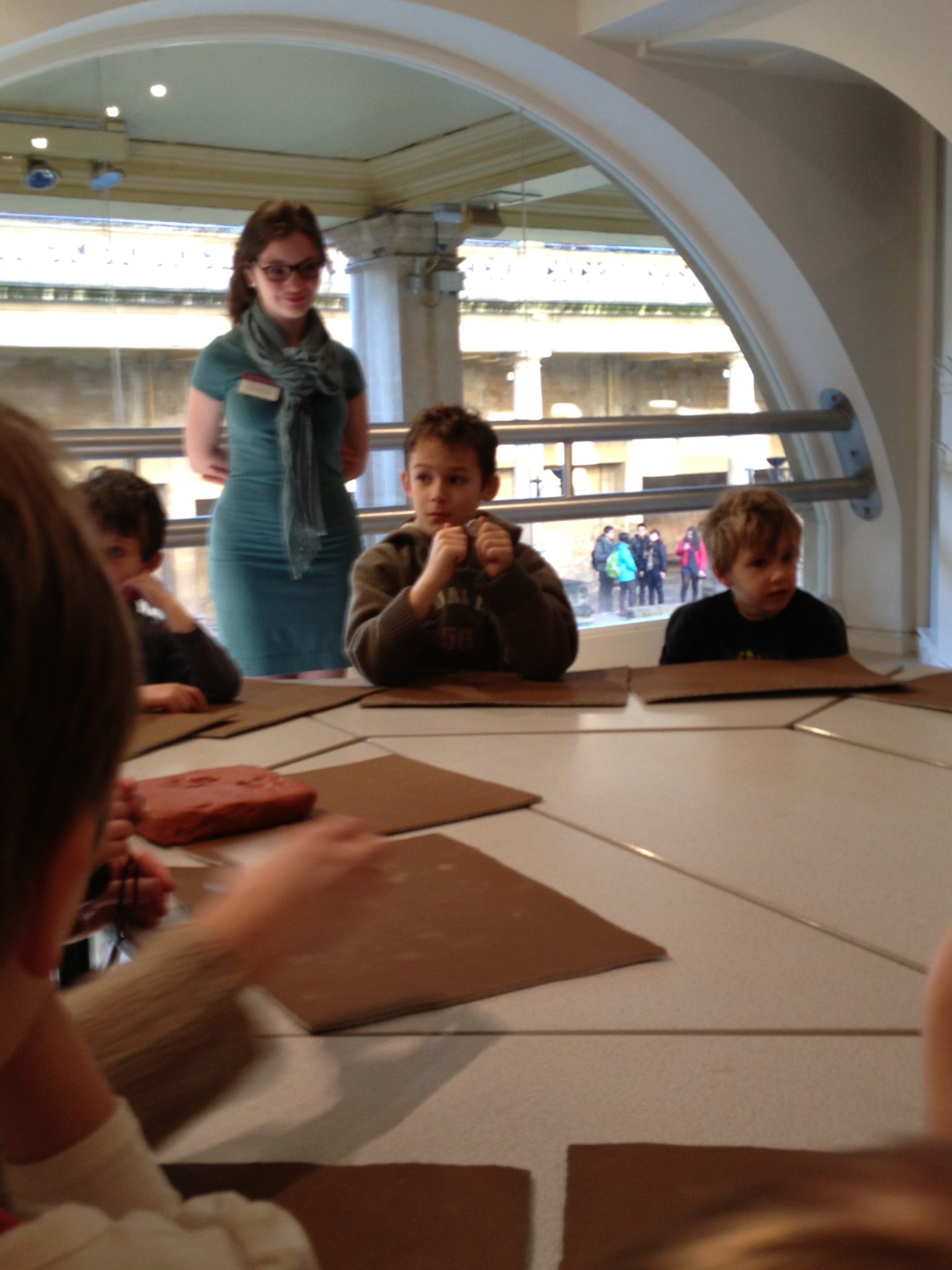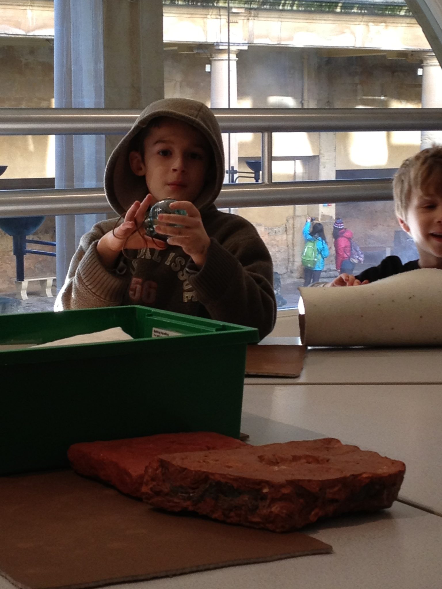 Once Everyone had arrived we headed in and went up to the Education suite where the children were given a mat each and had the chance to hold some Roman Items (replica’s made exactly how the originals would have been but obviously the actual Items themselves are far to fragile and precious to be handled themselves).