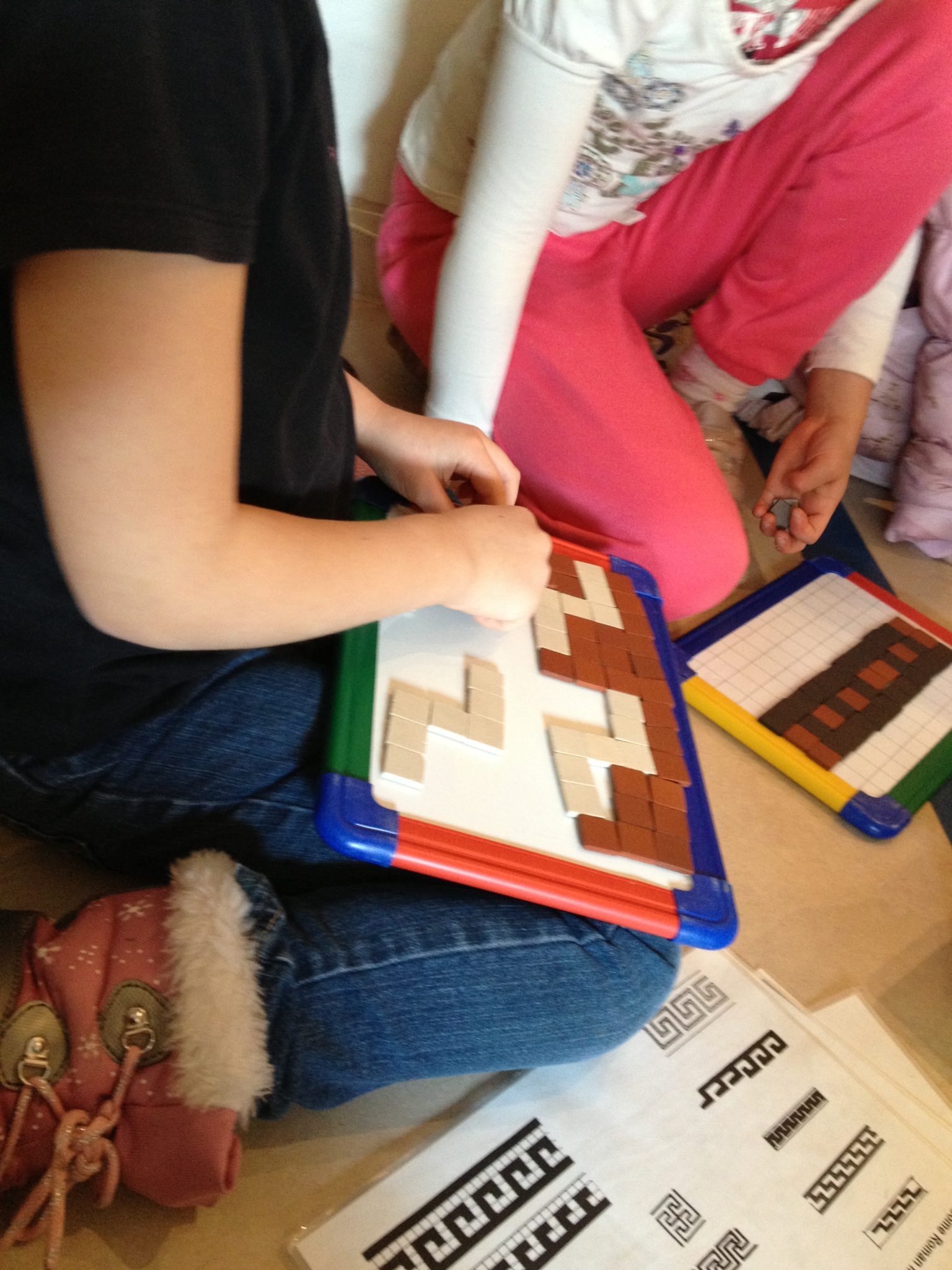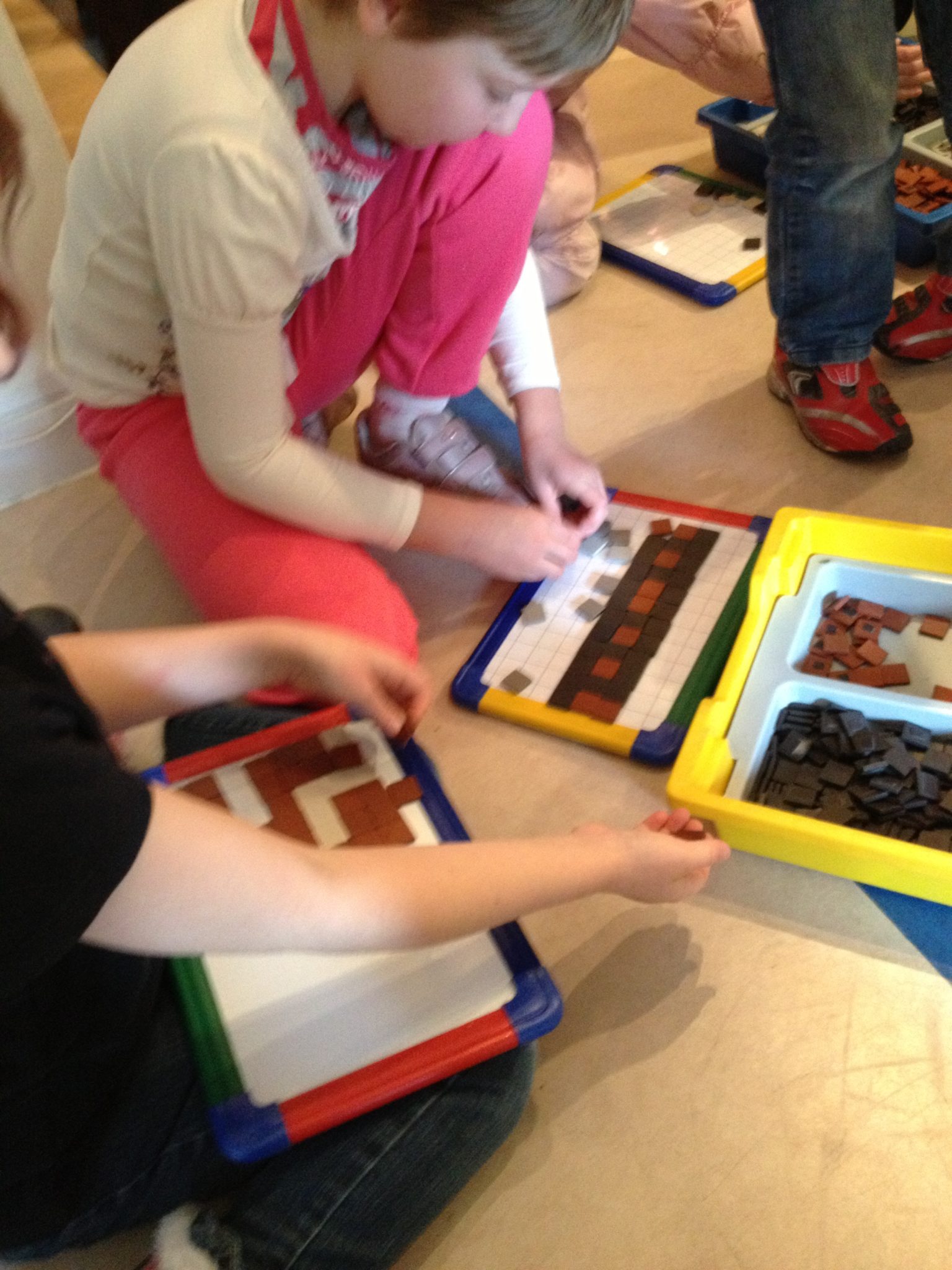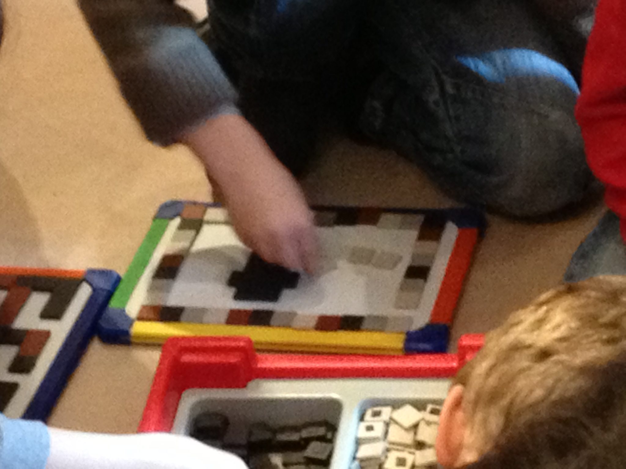 After show and tell the children had a chance to have a go at Mosaic tiling Jessica did a Z pattern in 3 colours.
