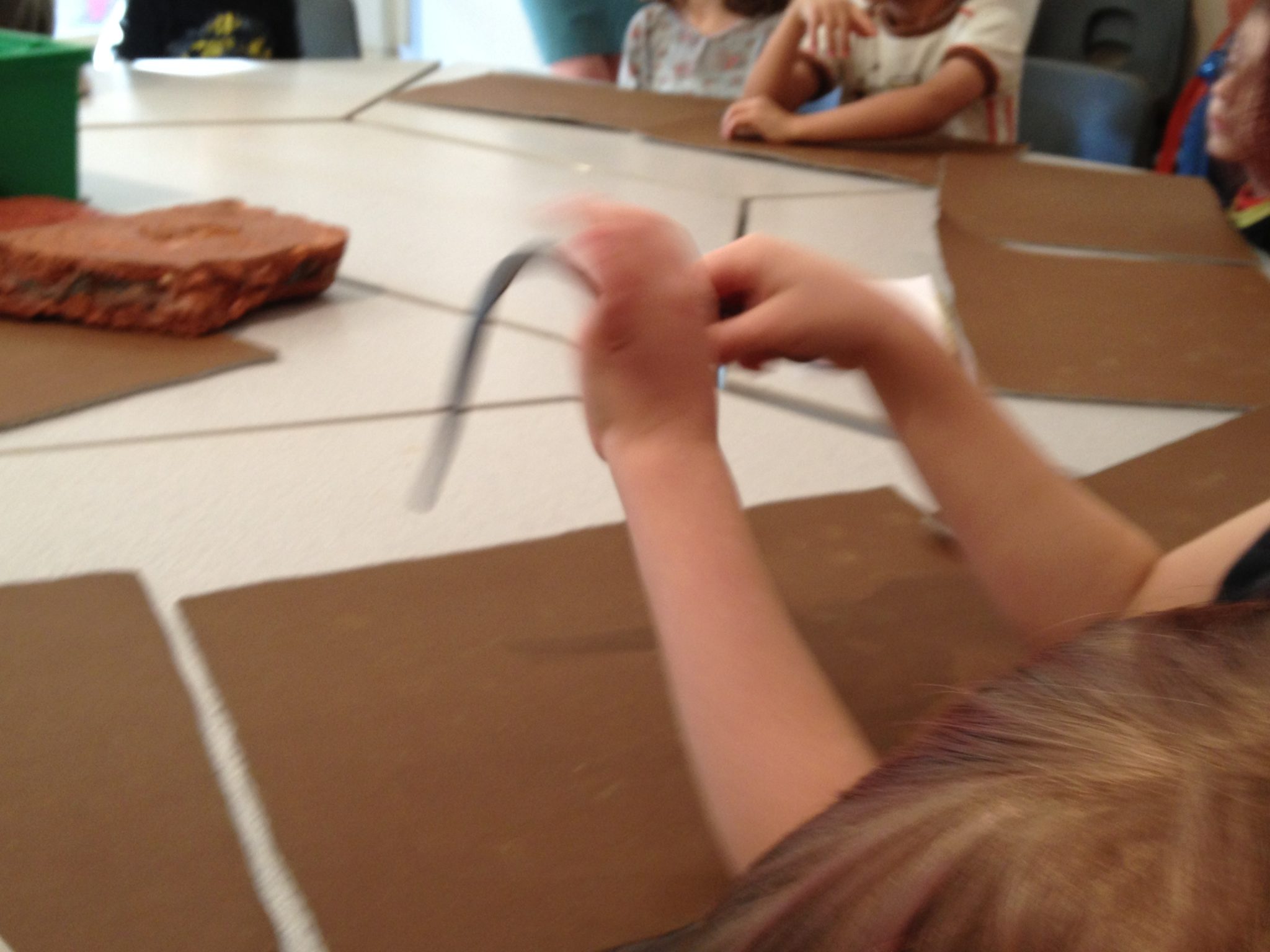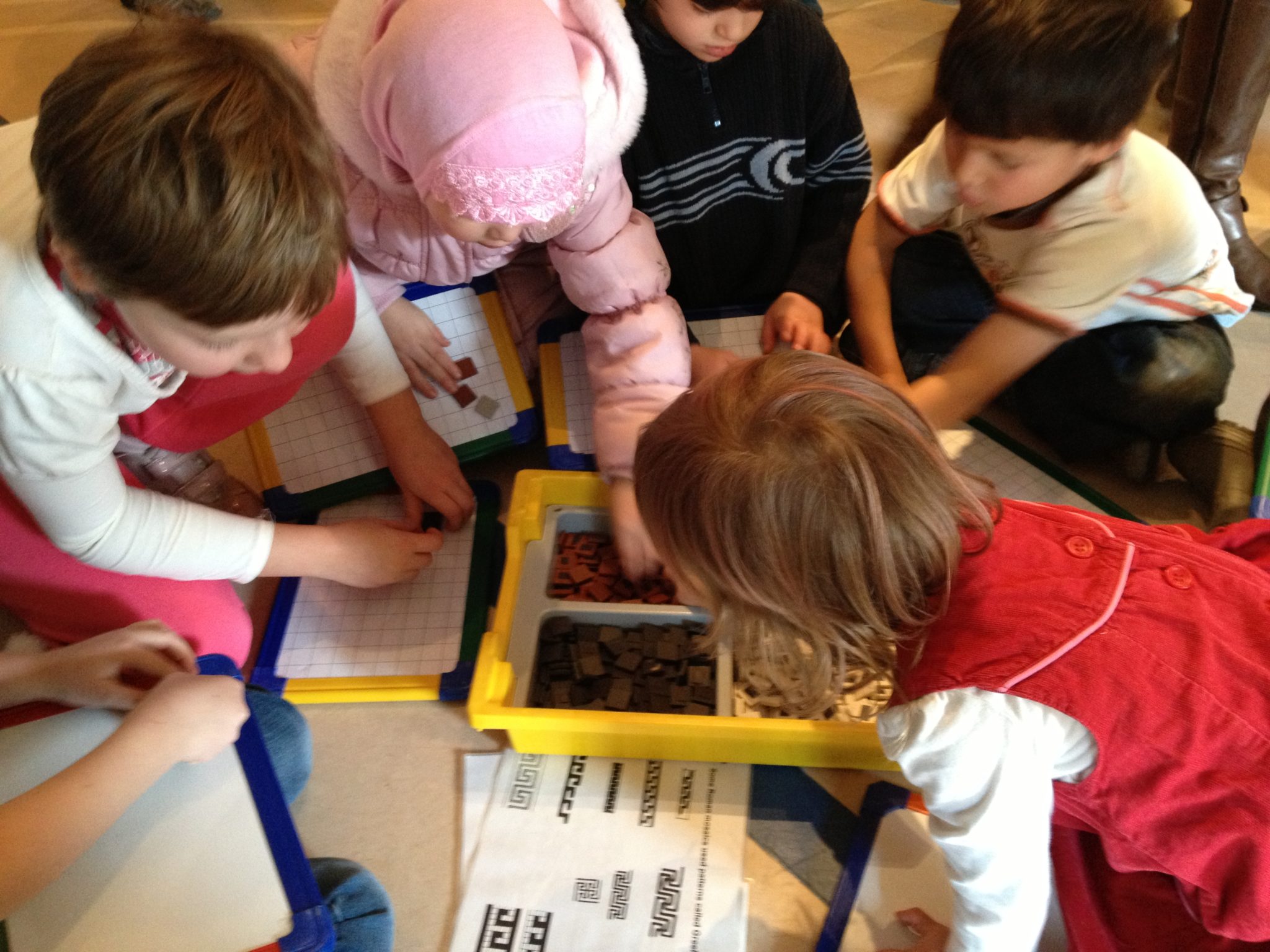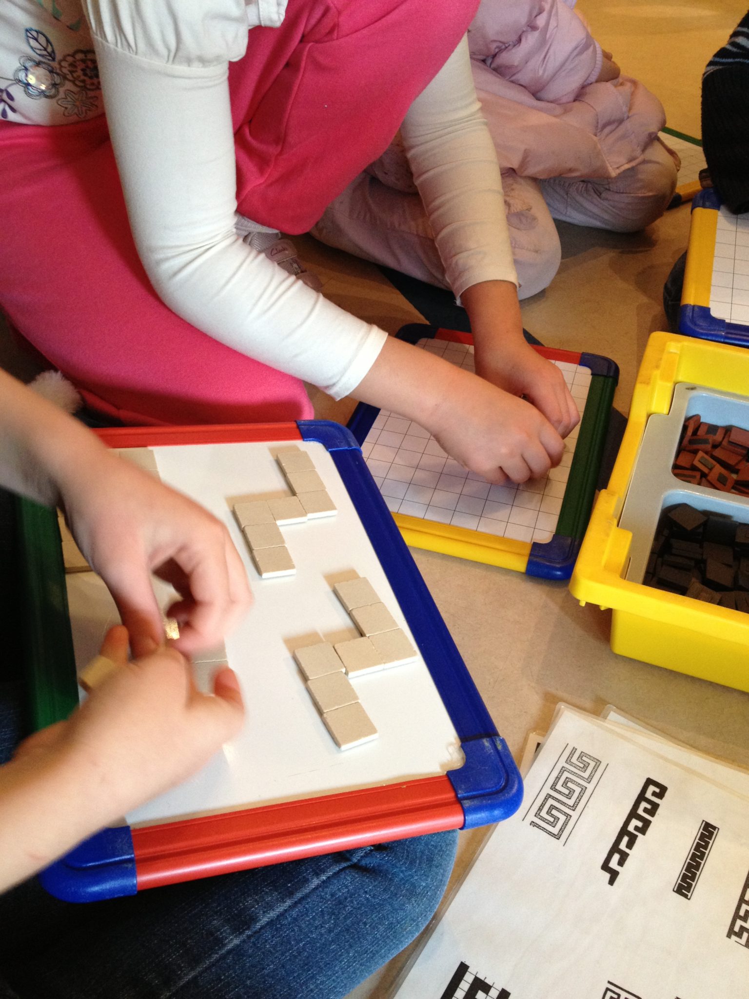 After show and tell the children had a chance to have a go at Mosaic tiling Jessica did a Z pattern in 3 colours.
