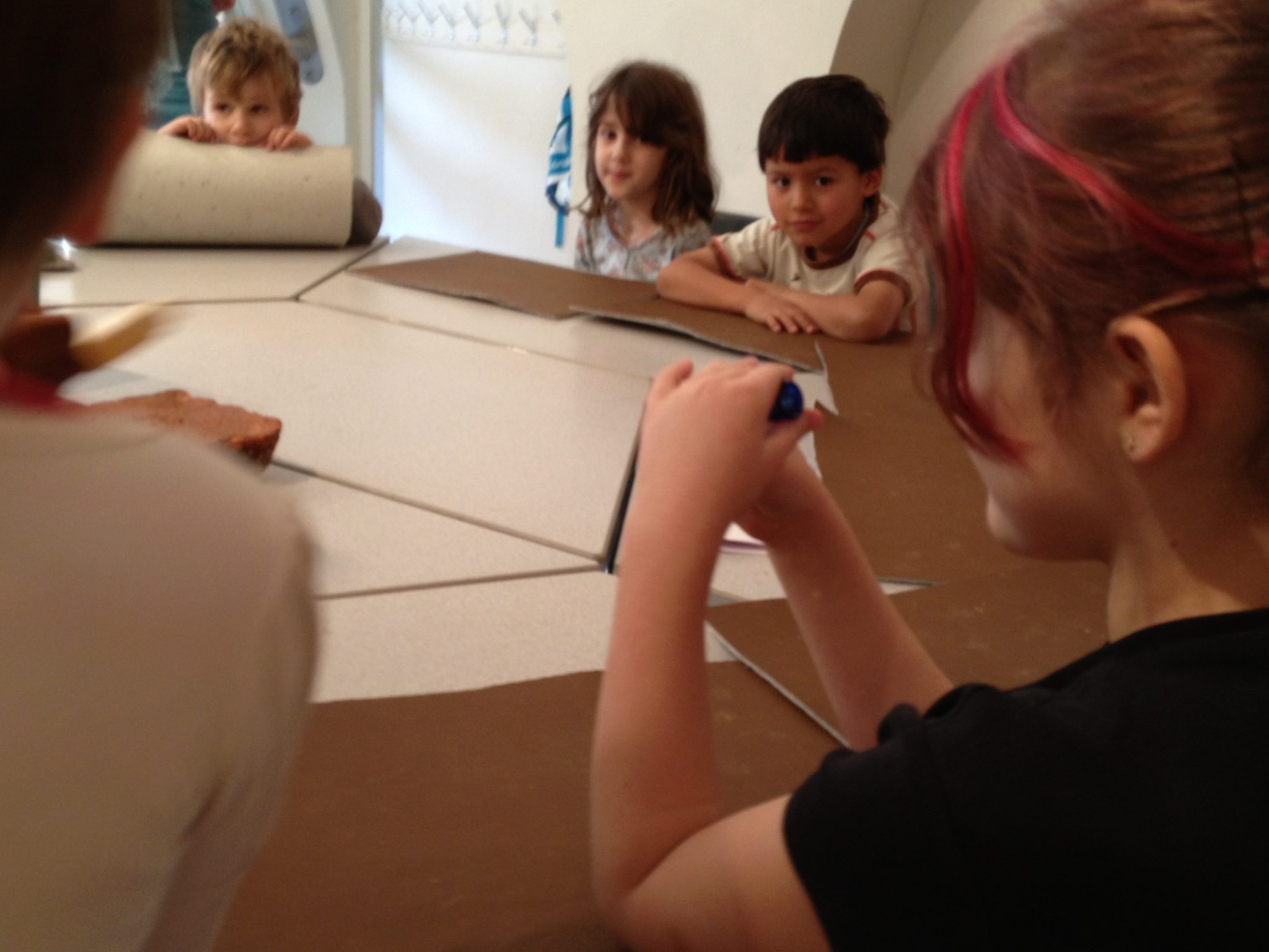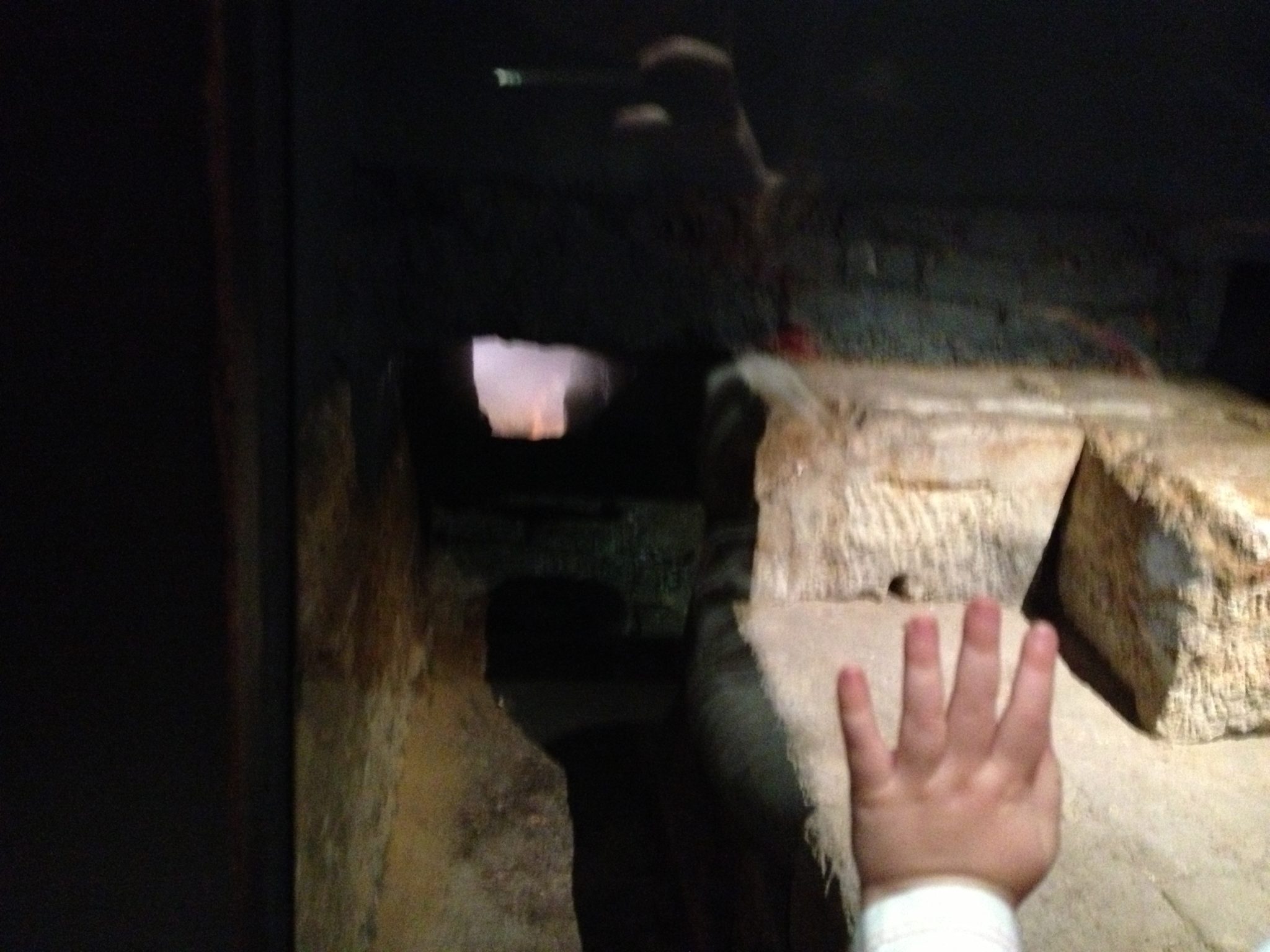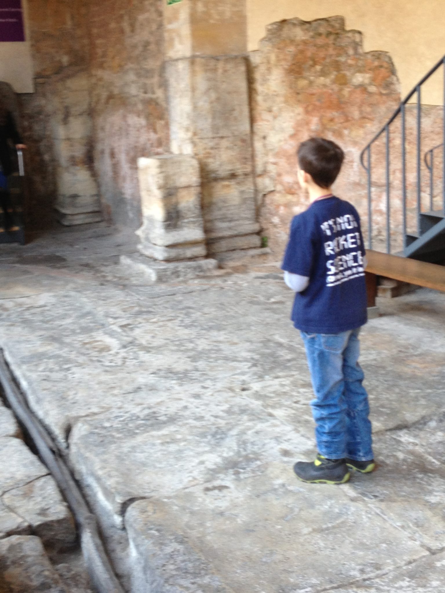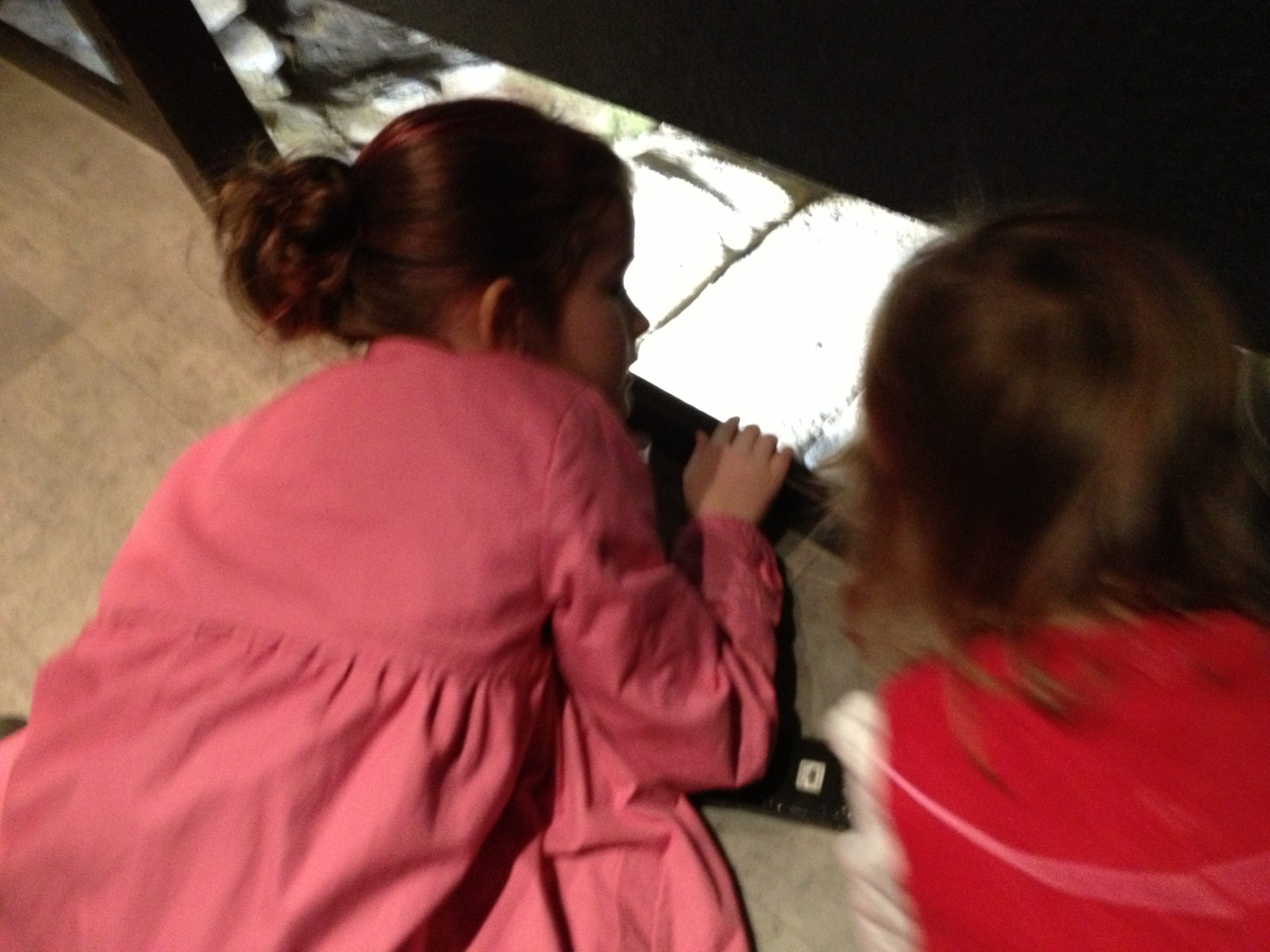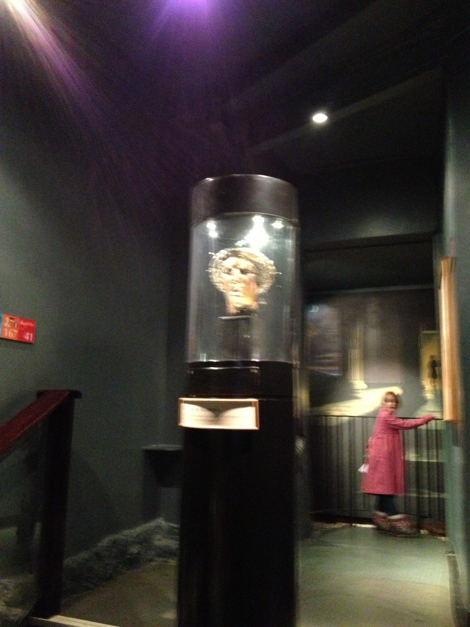 then you come to the only real interactive part of the Museum where the children really enjoyed being able to touch a mosaic’s and Emily even laid down talking to the animals on it,