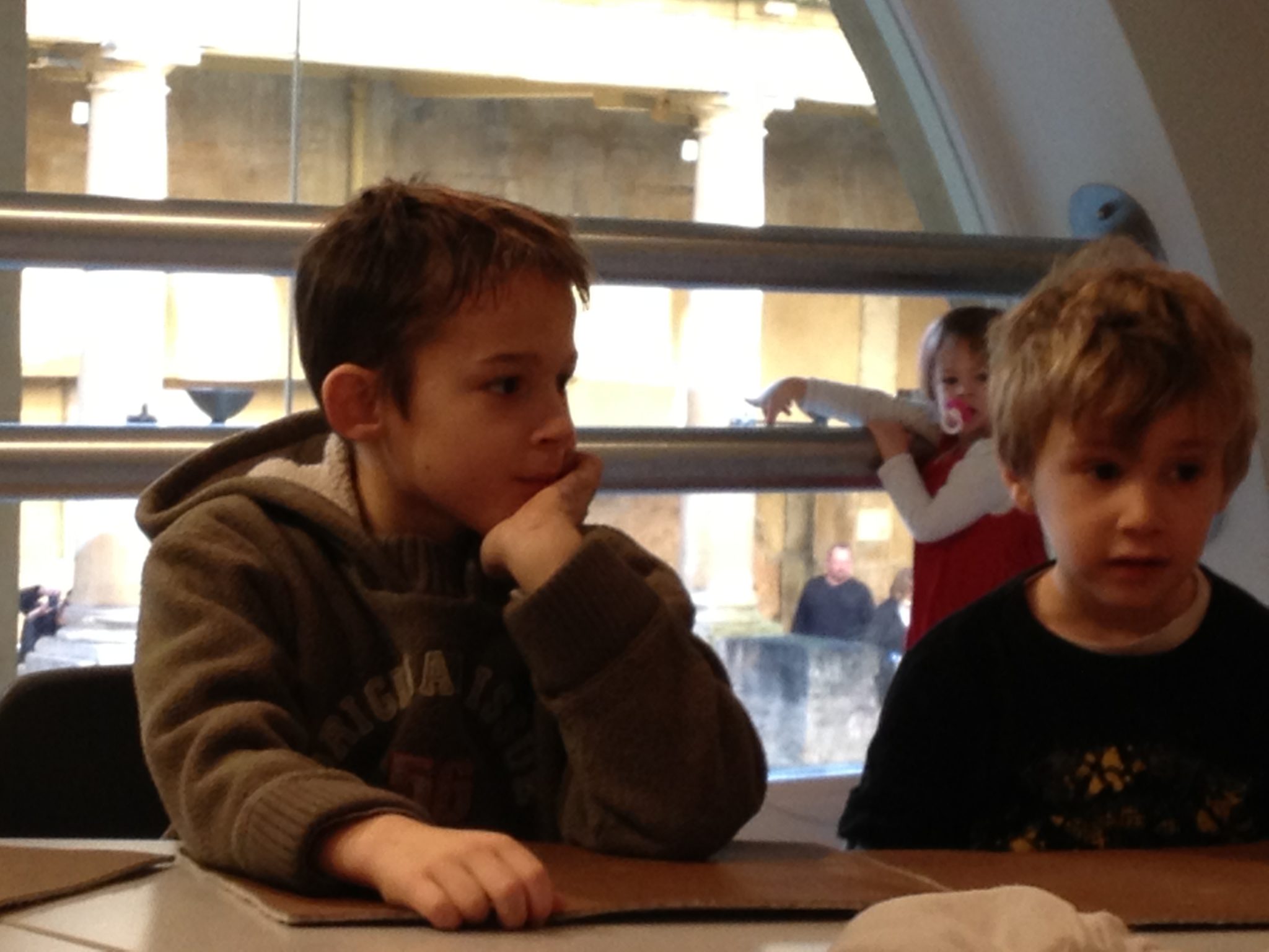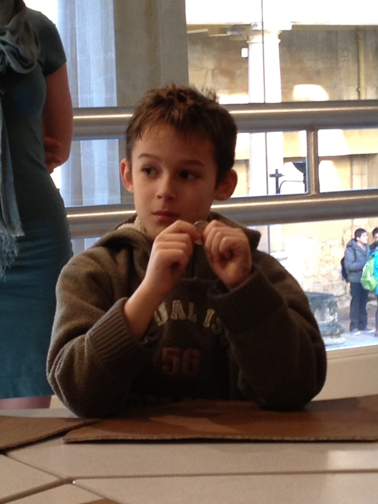 They also got a chance to look at some Roman Coins as a picture of Roman Daily life at the Baths was slowly being Painted. Both Thomas and Jessica both brought themselves a Roman coin from the gift shop last time we came and were both really pleased when the coin passed around was just like theirs.