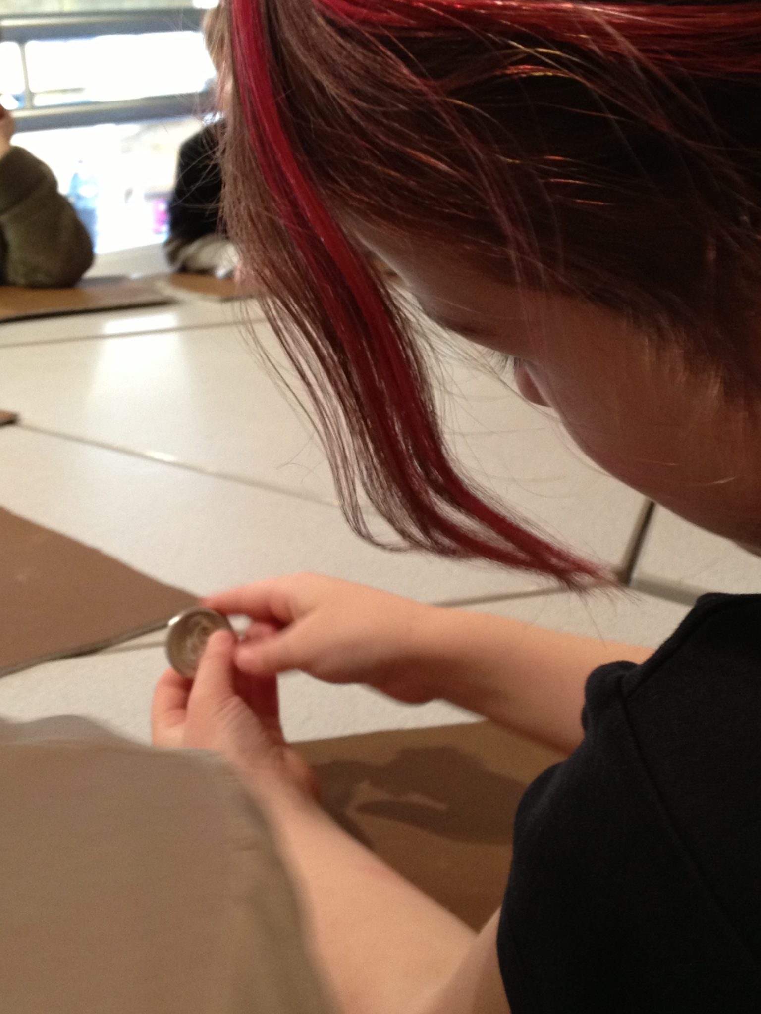Thomas waiting very patiently waiting for the clay tile with the Animal prints in it and then studying it before passing it on. Thomas asked on route home to make a tile of our Dog charms print so looks like we may have a future Project.