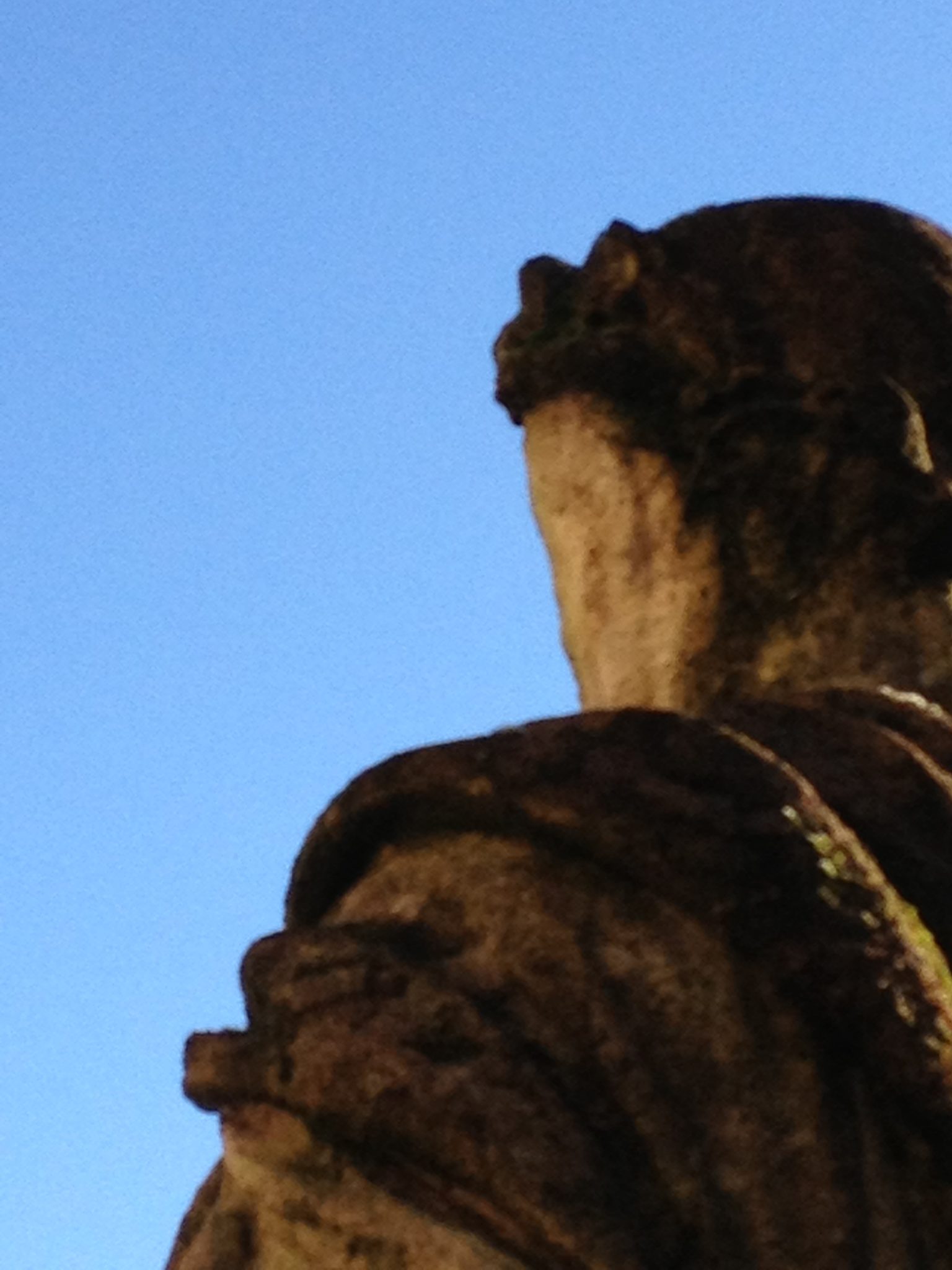 we now get to the Temple, before you reach the Temple Steps (left hand picture where Jessica is stood) you come to this very odd and a little creepy bust of Minerva. this is where you would have seen the Temple Entrance (implicated in the right hand picture) Would have been Just in front of you and realise how grand this place would have been.