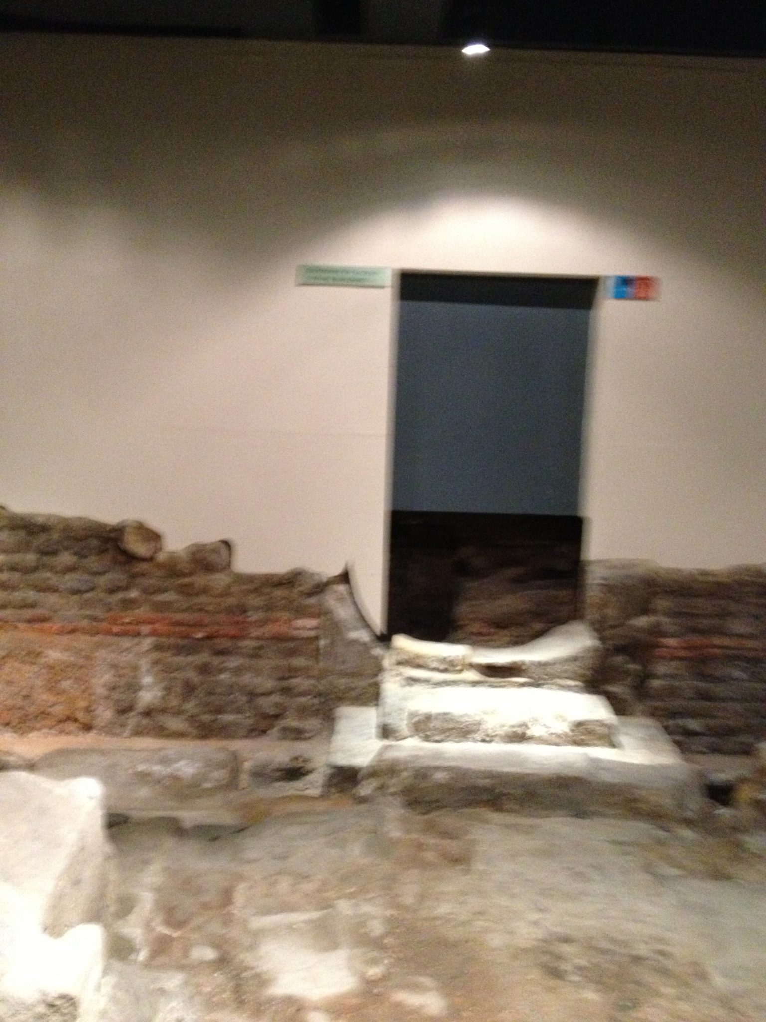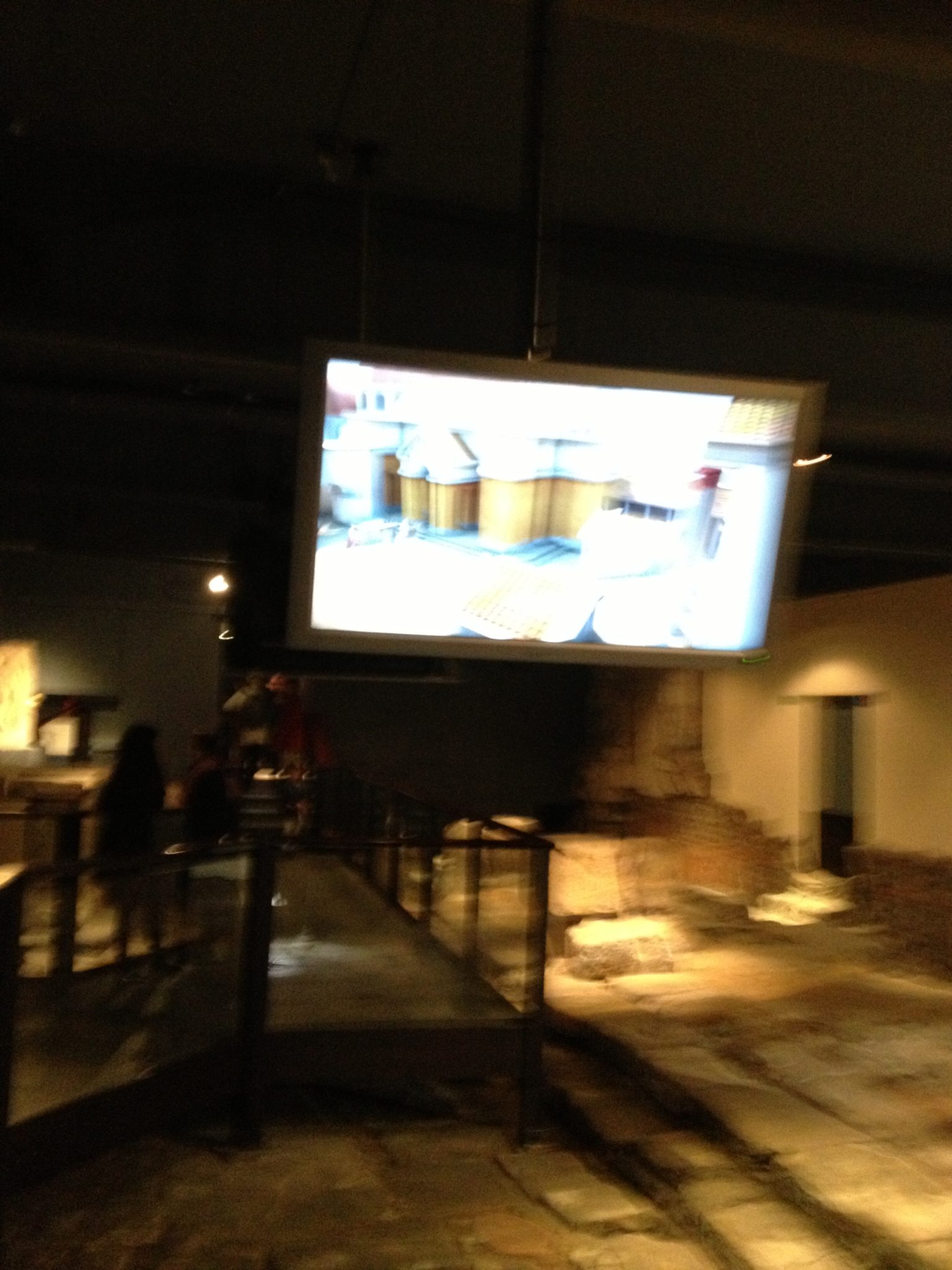 you then head down the stairs and the first thing you see is part of the original floor with a projection on the wall behind it of Romans, dogs, Ladies etc walking past.