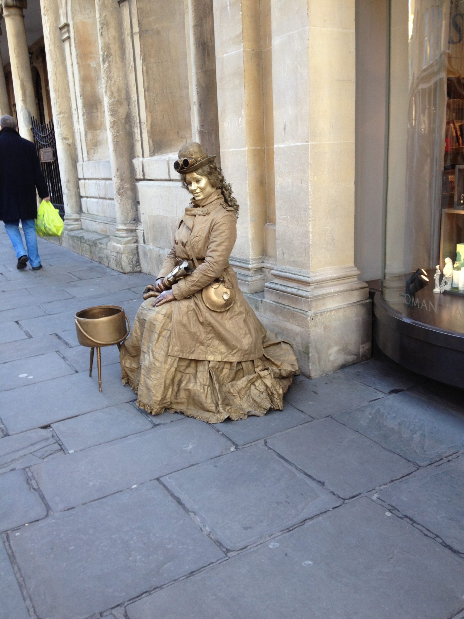 I Took this photo because Thomas wanted one of her but as he went to take the photo someone put some money in her pot and scared Thomas so much he nearly dropped my phone as he ran away bless him he didn’t realise she was a real person and even after he regained control of himself again he still wasn’t keen on getting close enough although jess and Emily did slowly creep close enough to put some Money in her pot and the Lady moved again and blew them all some kisses.