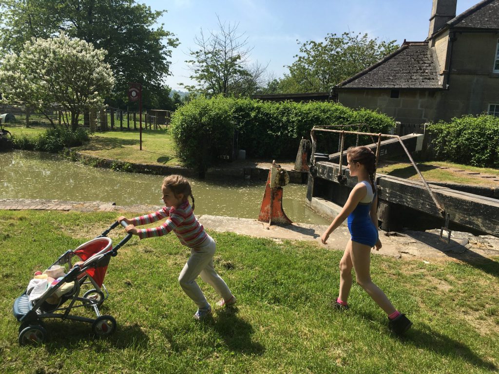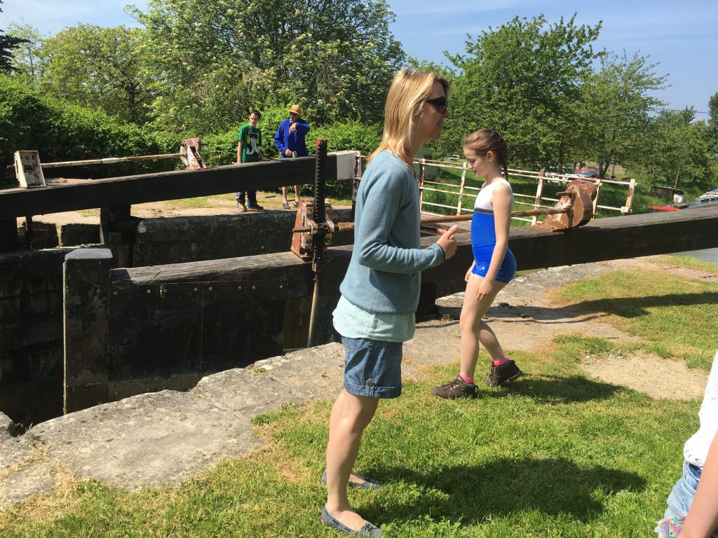 but as they were getting ready to adjust the lock for their boat to go through the boat owners spotted two boats wanting to come up the canal so he gave all of the children a job to do and with other members of other barges they helped the two boats by doing all the gates.