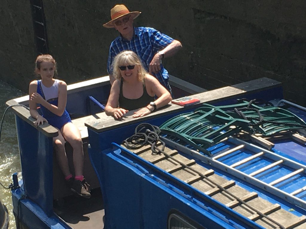 so we asked them if they were and if they minded if we watched and they invited the children onto to boat to go have a look and asked if they would like to travel through the lock in the boat.