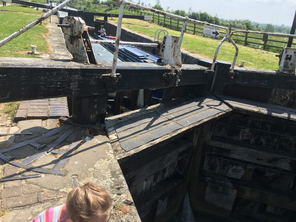 the children then jumped aboard the boat and it made its way into the lock after an other boat looking to make its way down and the fun started all over again. this time Slowly lowering the level of the lock by opening the Sluice gates in the lower lock gates.