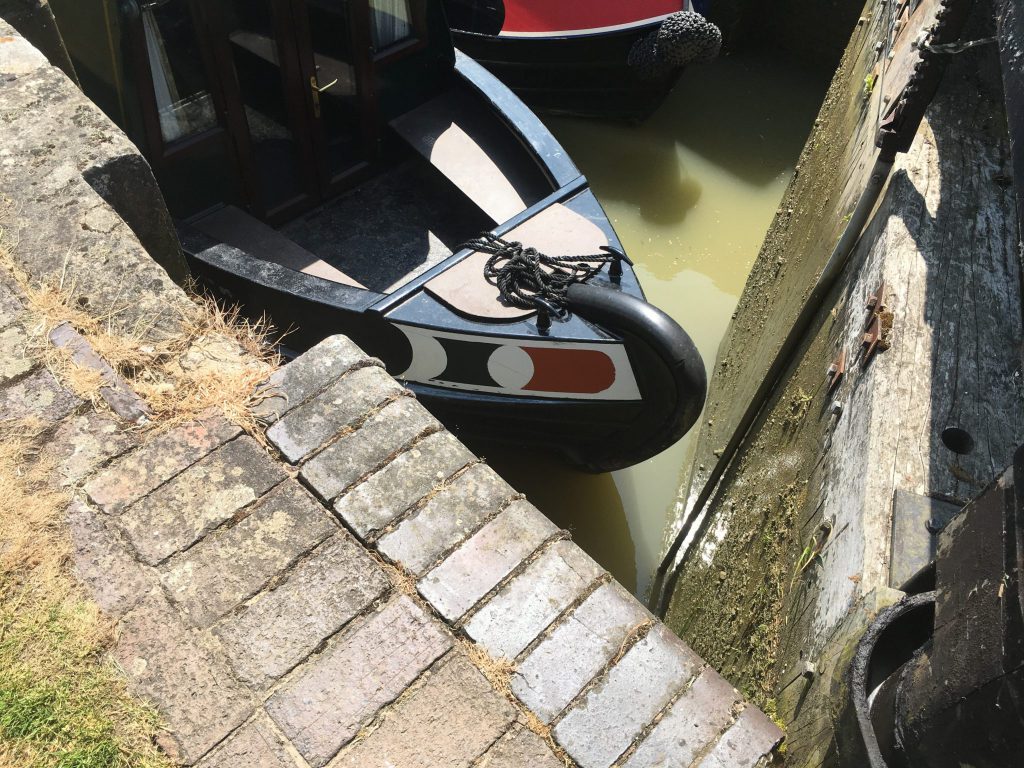 so we walked on again and they soon spotted a boat that was moored and looked like it was about to come through the lock.
