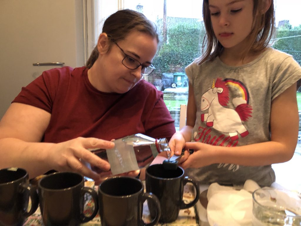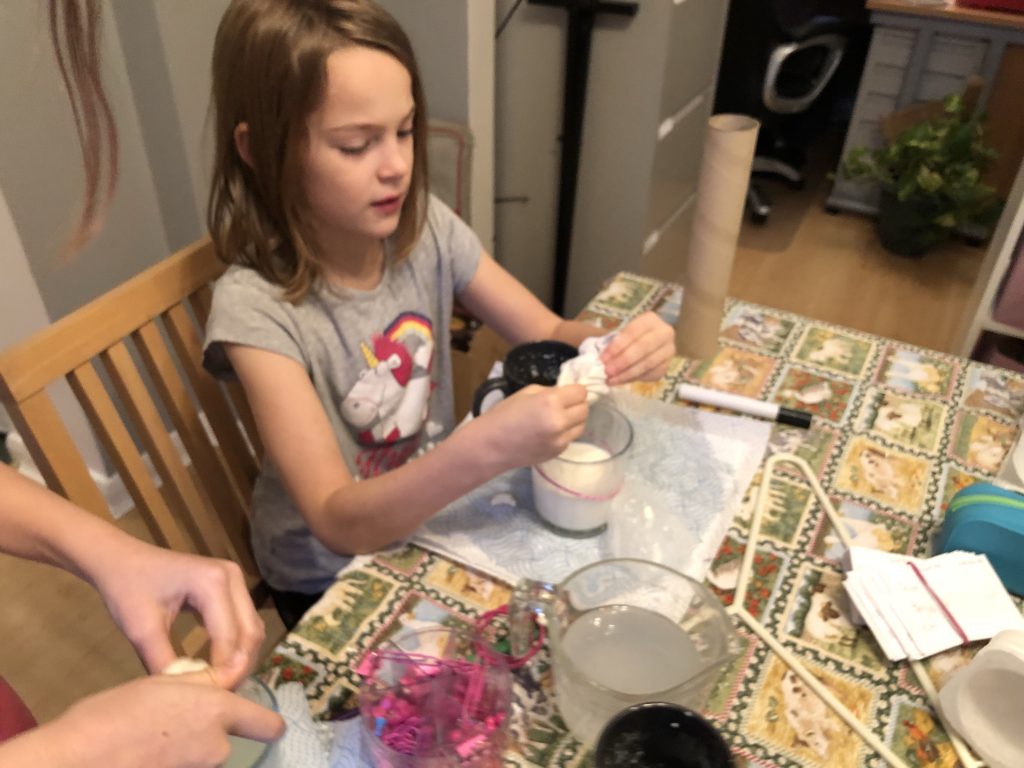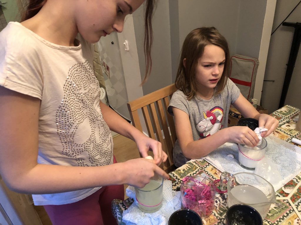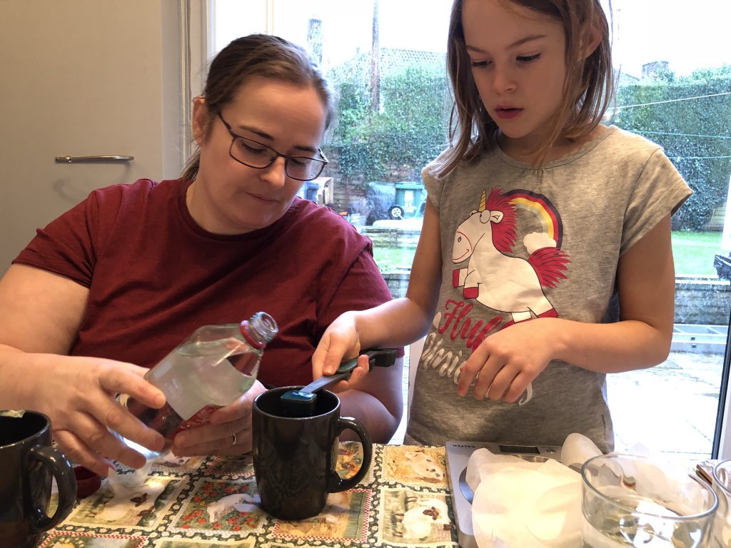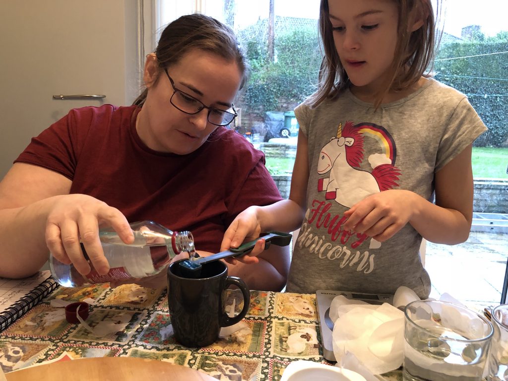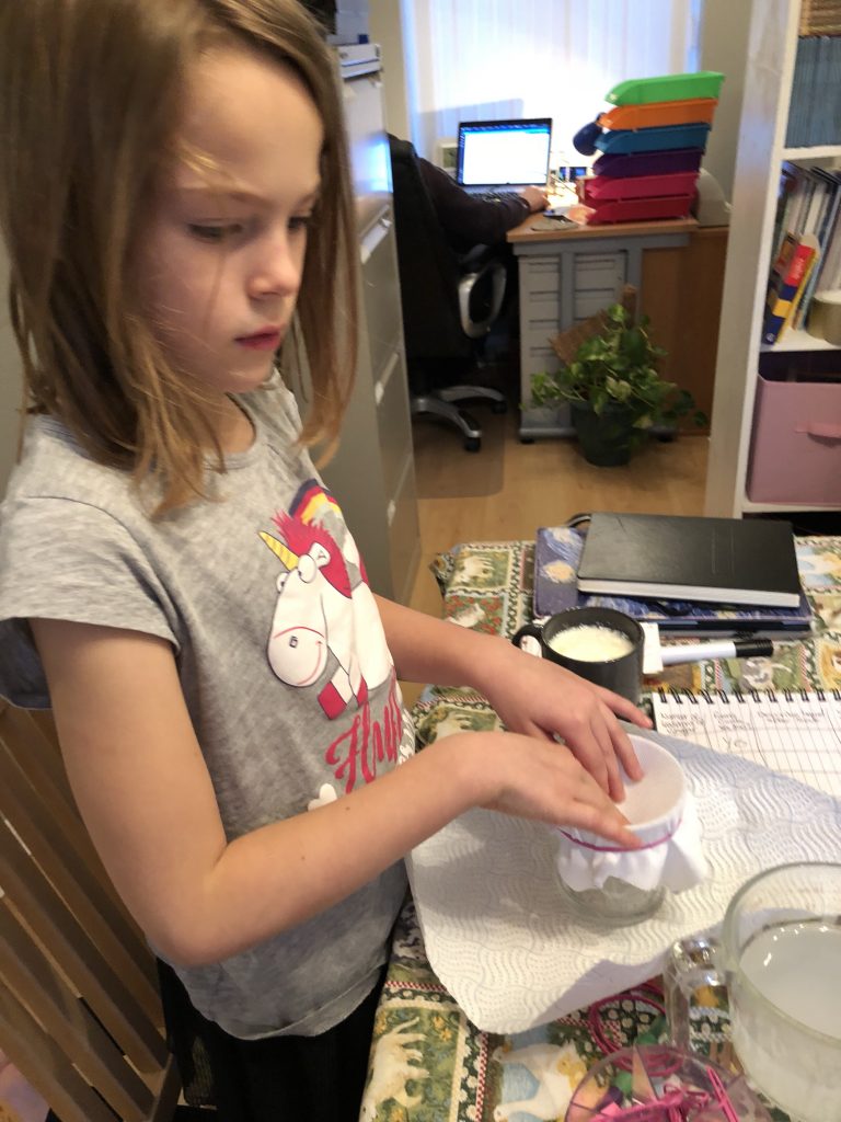 Kids started by making sieves from and old Tshirt and cutting greaseproof paper into circles to protect our scales,