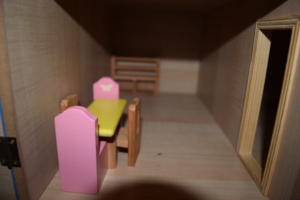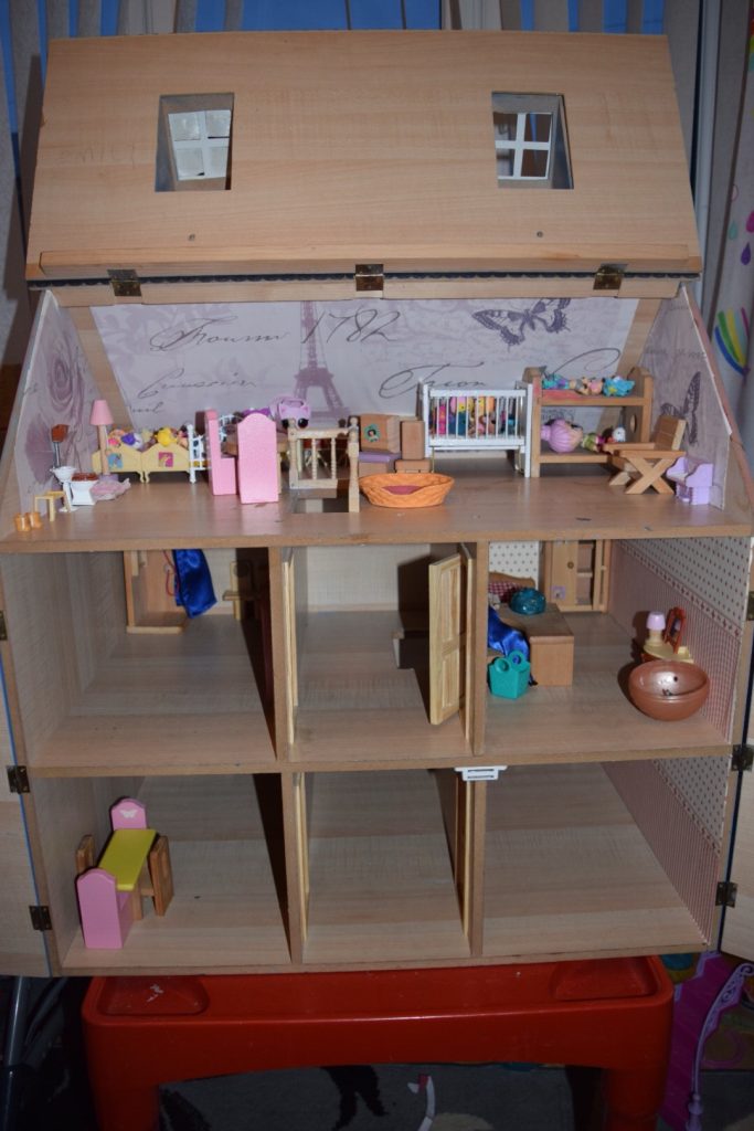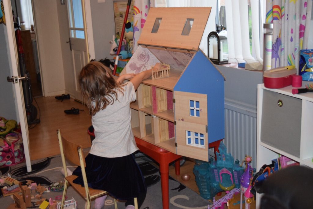 Emily however asked if she could decorate her dolls house and so I got out the PVA glue and she set to work Decorating her play house.
