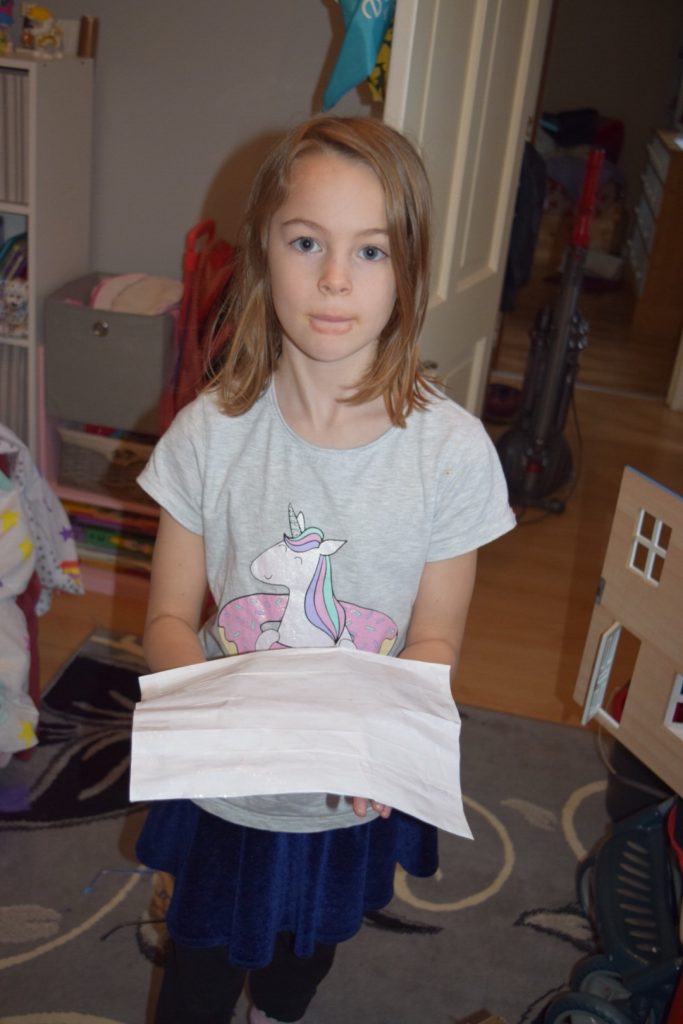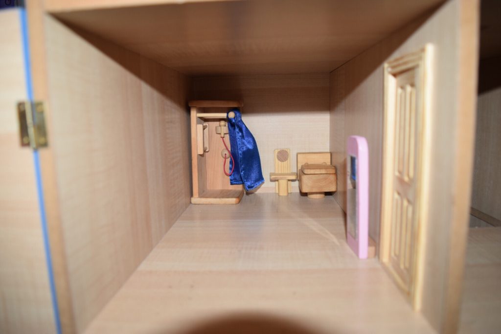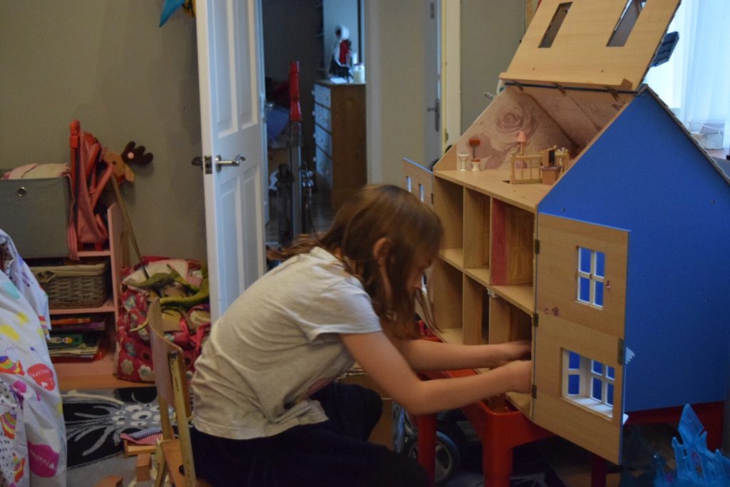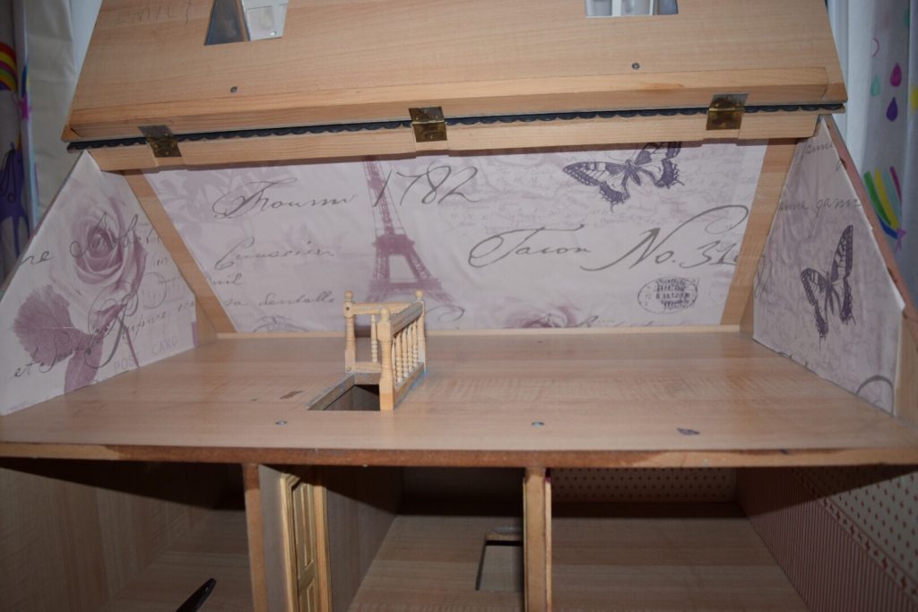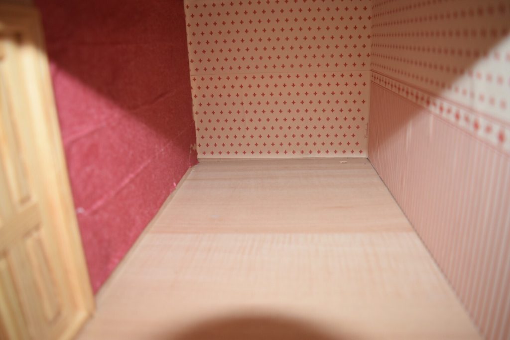 I cut the paper to fit the rooms for her but she decided where it was going to go and added the glue and stuck it down.