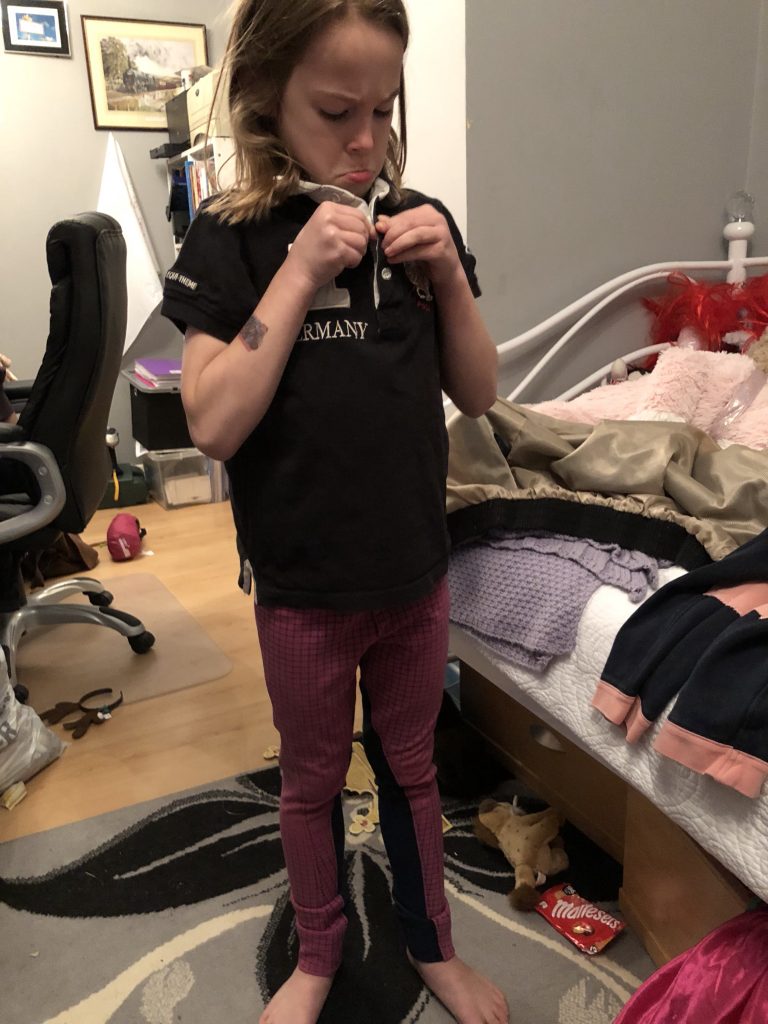 That evening Emily and jess were lucky enough to be offered some horsey clothes. So we had a little fashion parade before bed.