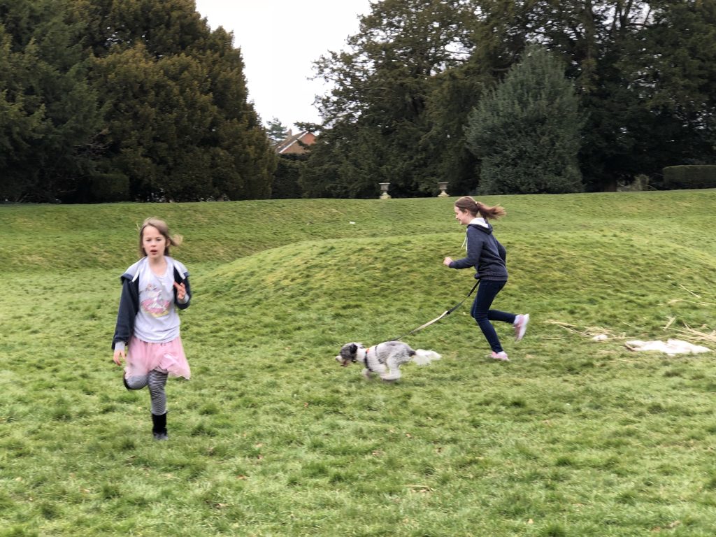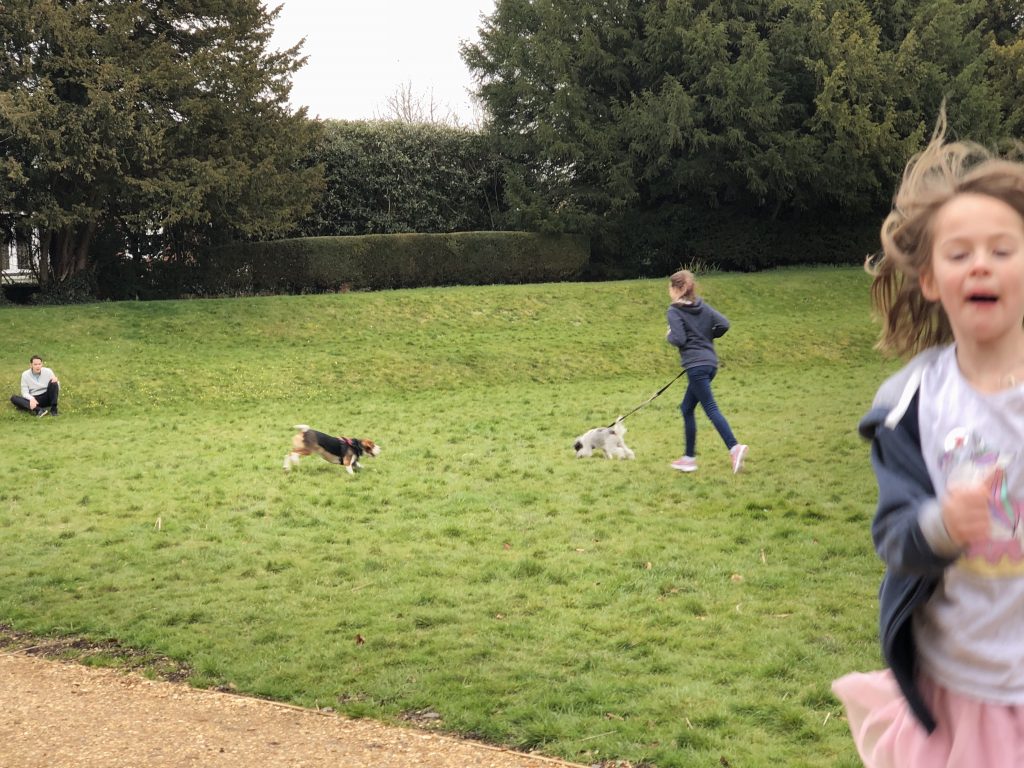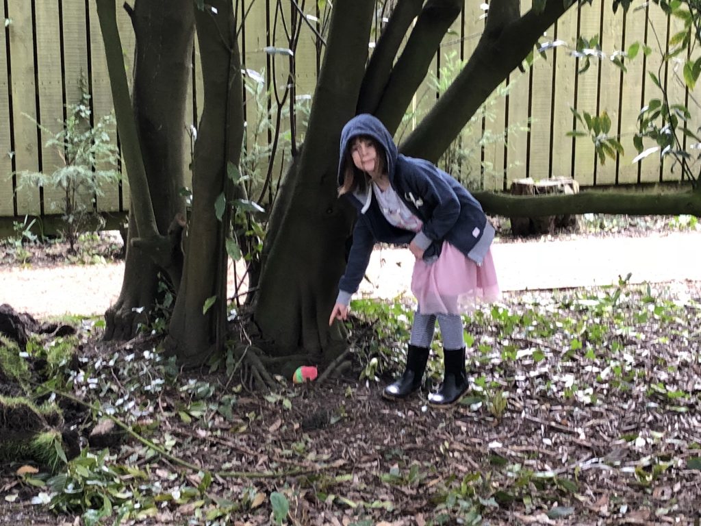 Today we didn’t have Paul come but instead we went to the library to return the books and then went to collect my mum stopping off to walk the dogs and hide a couple of decorative stones in Moot Gardens whole we were there.