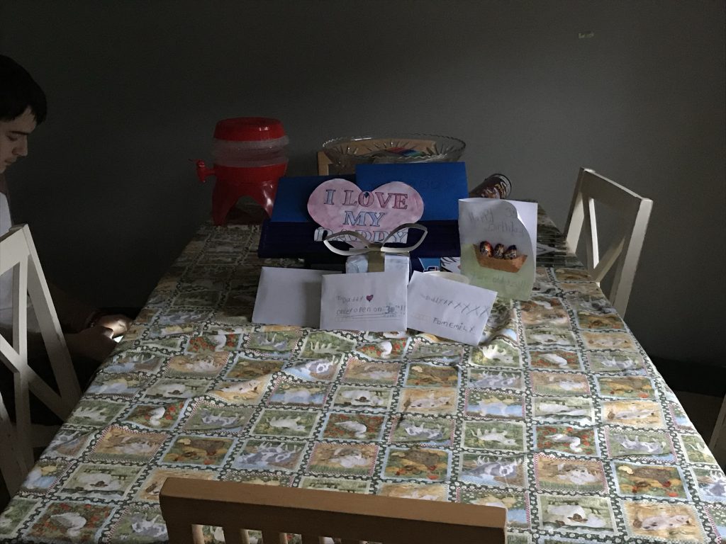 He opened his presents and cards from the kids (again pictures on Jessica’s camera will update later).