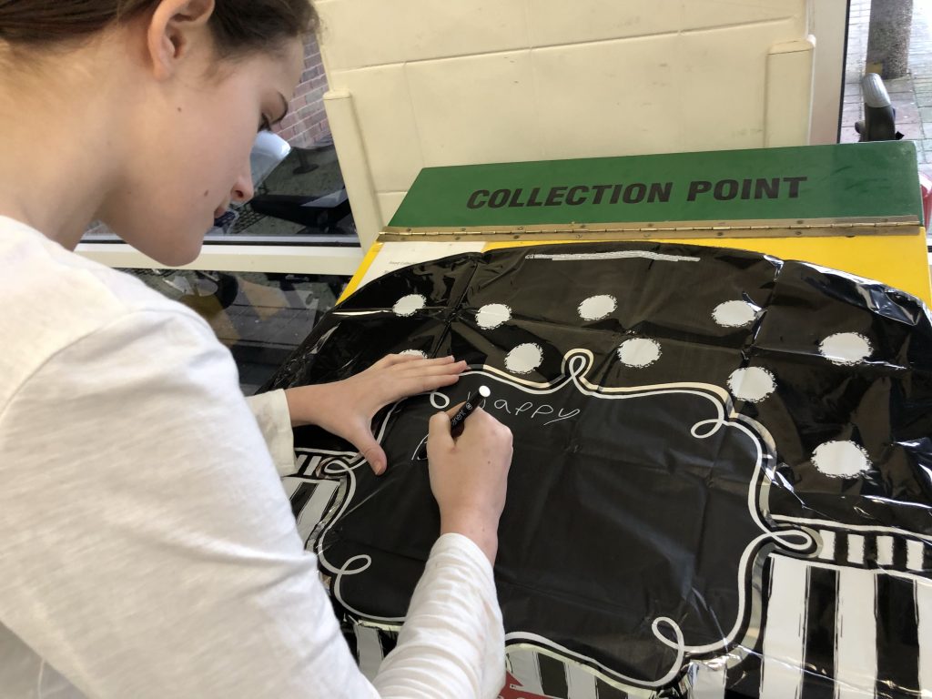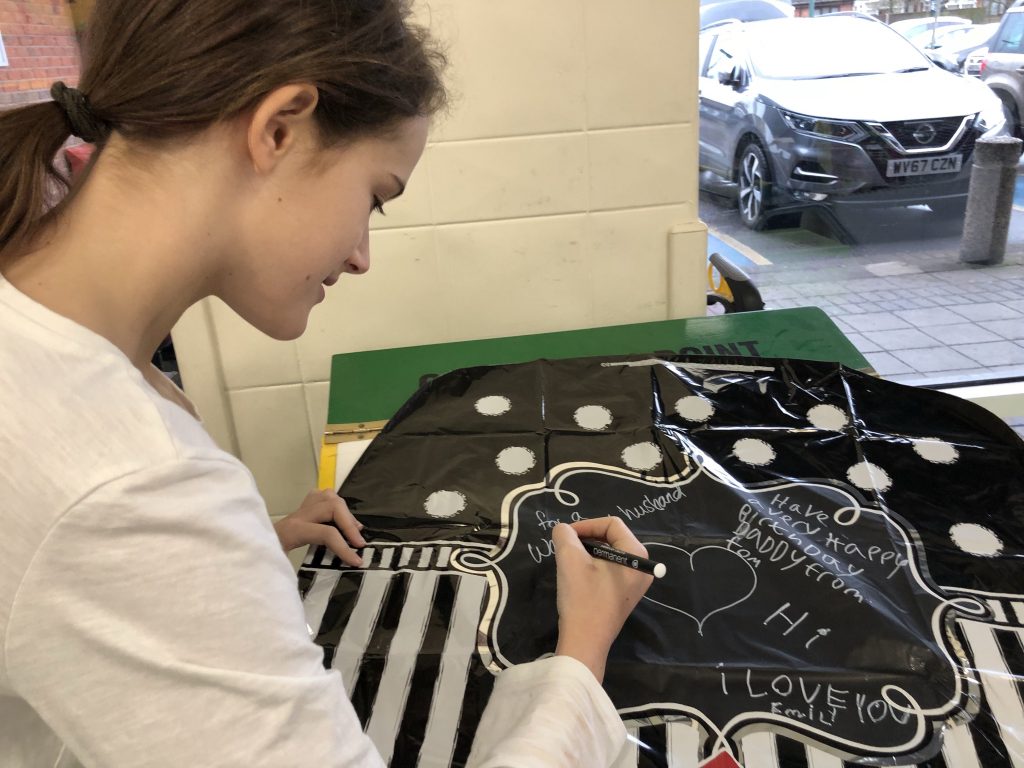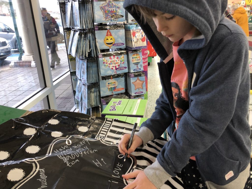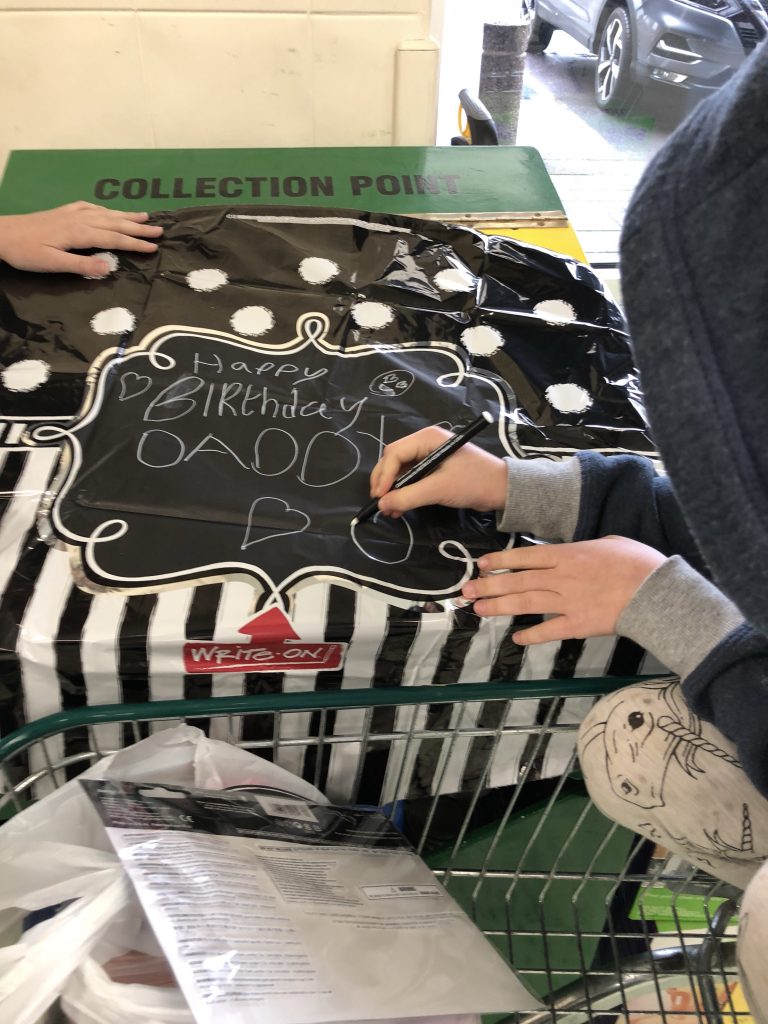 We also brought daddy a birthday balloon that the kids decorated themselves.