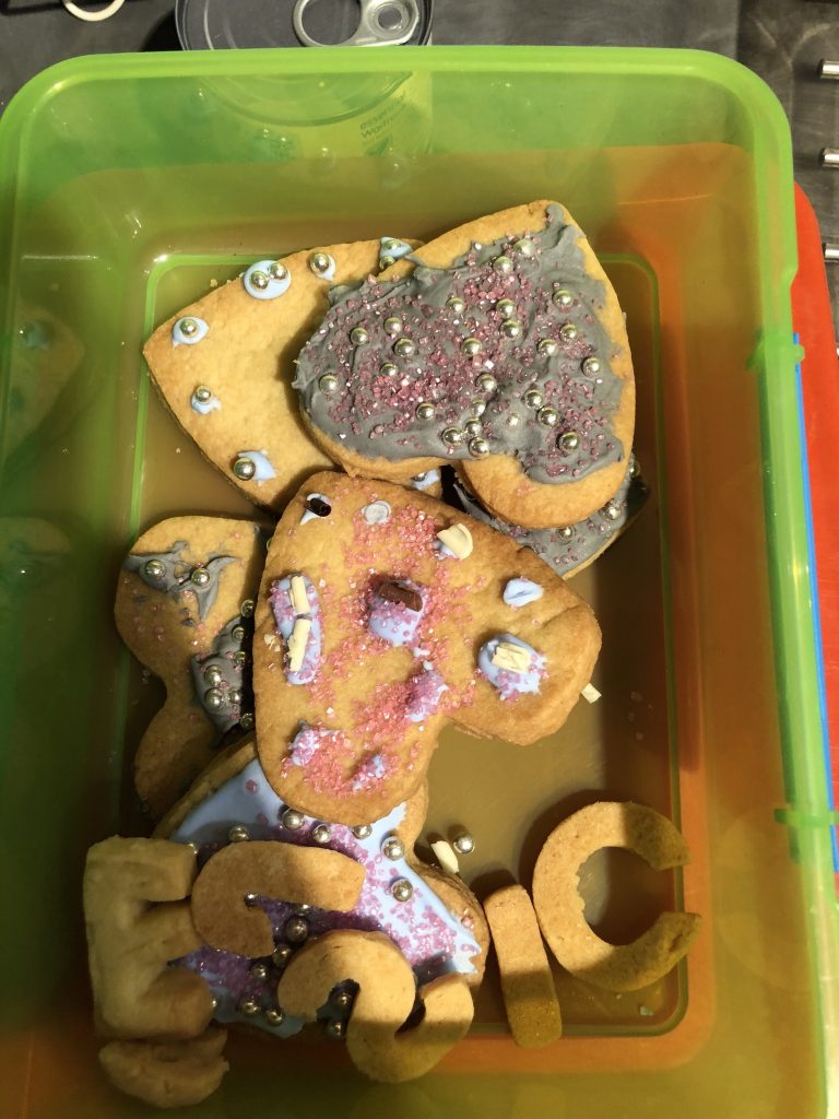 Today we had a friend from WPCC (Westbury Parent Carers Council) come with her 8 year old daughter and they did make up, nail Varnish, made biscuits, played in garden, decorated biscuits, played in the bath and made Cornish pasties.