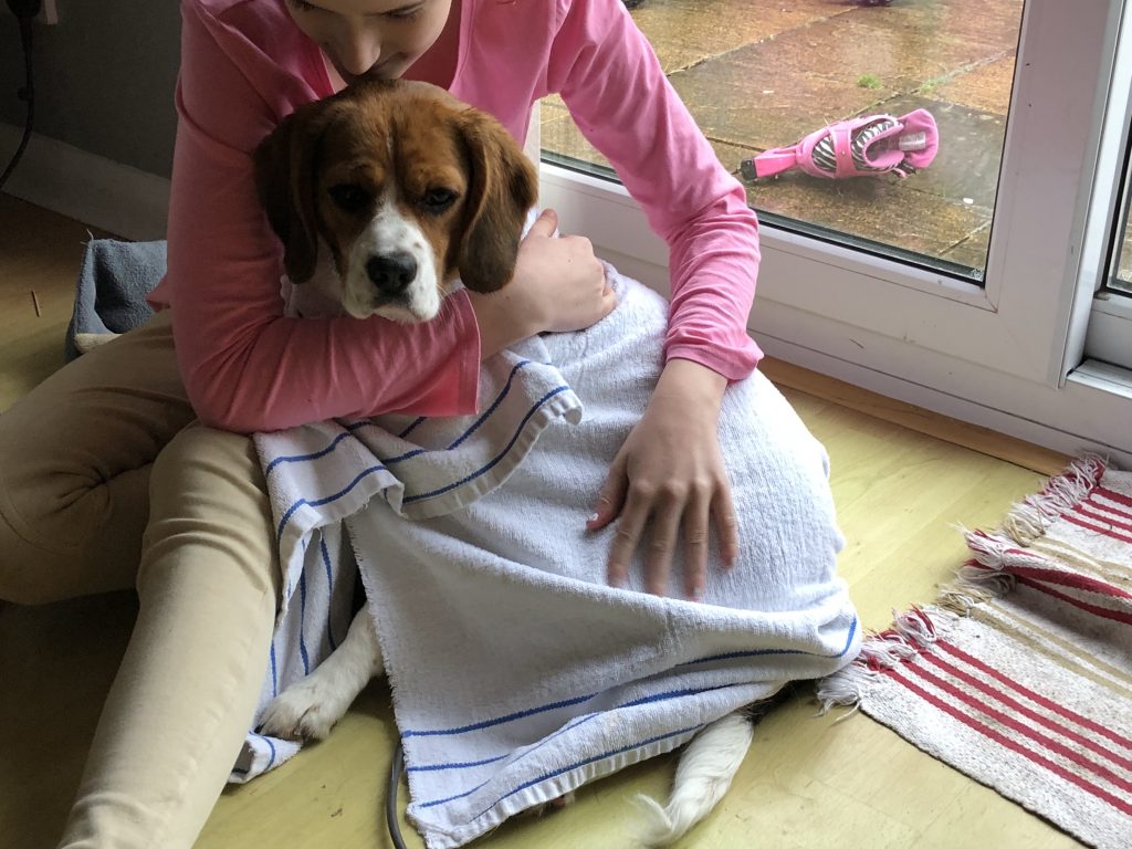 poppy wasn’t as sure about the new friend to start with and instead while Benny got acquainted poppy sat with Jessie in her towel.