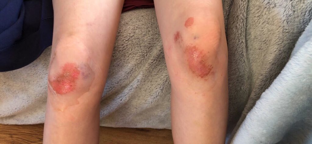 Today Jessica’s knees didn’t really look any better so we didn’t do much Paul came and they worked with him for a while then Jessica went back to her virtual ‘cheeky Emily helped on and off but it helped jess keep her mind off her knees.