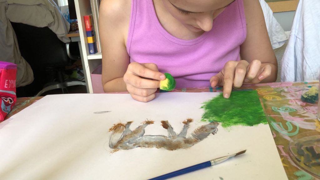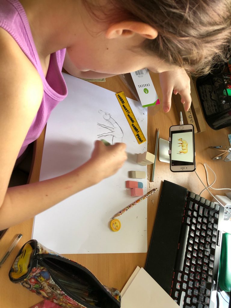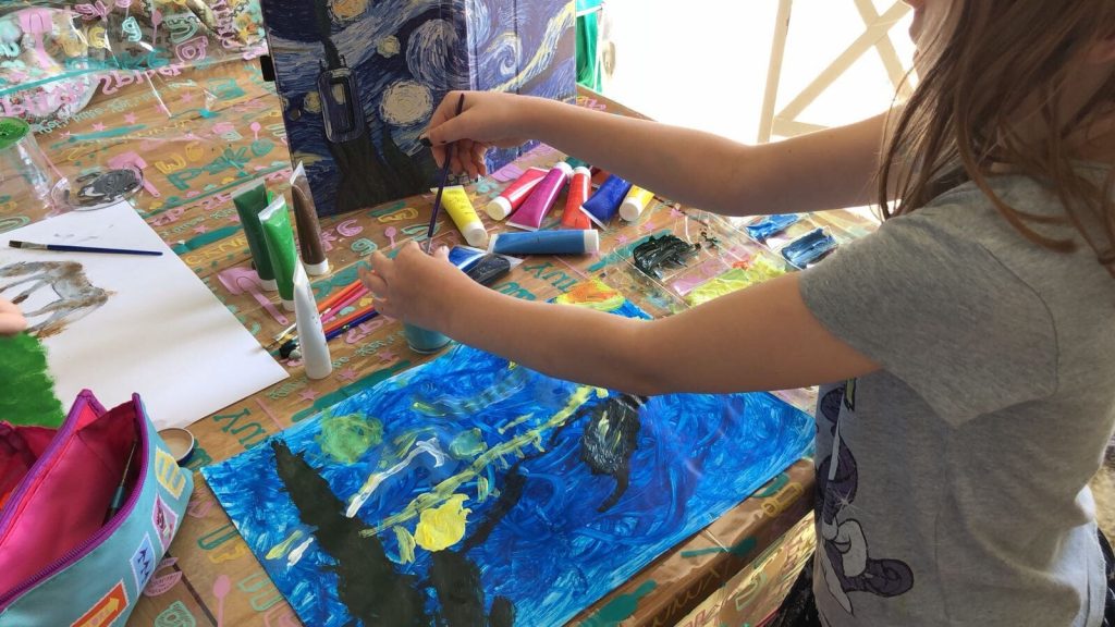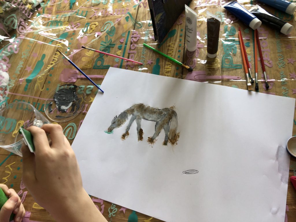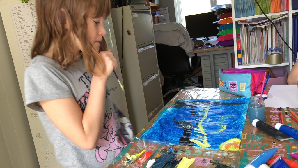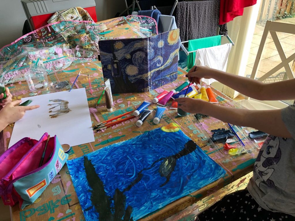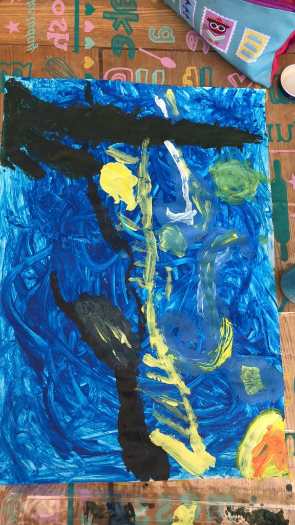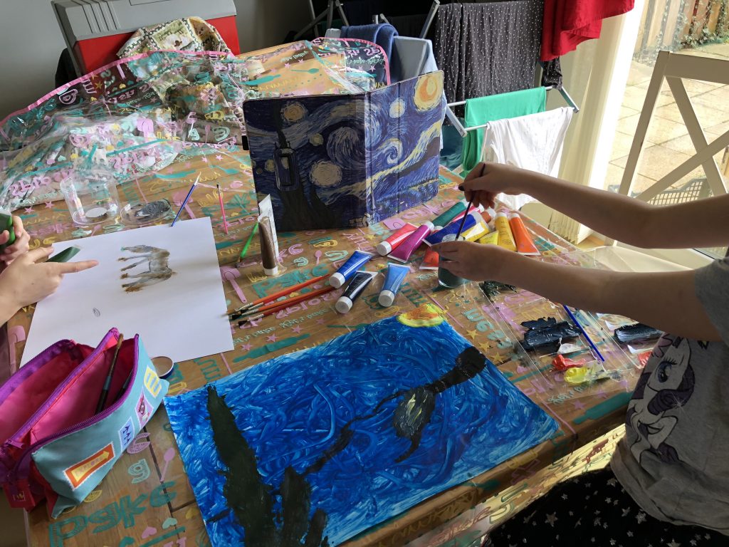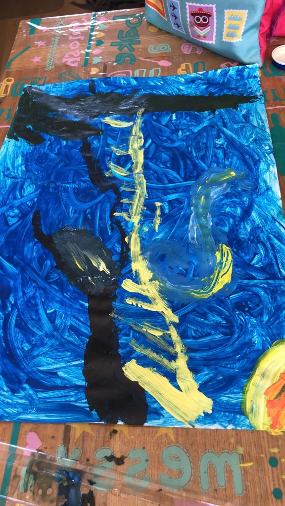 Today the girls did some more drawing and painting Jessica worked on a picture of cheeky and Emily did her own copy of Van Gogh’s Starry Night.
