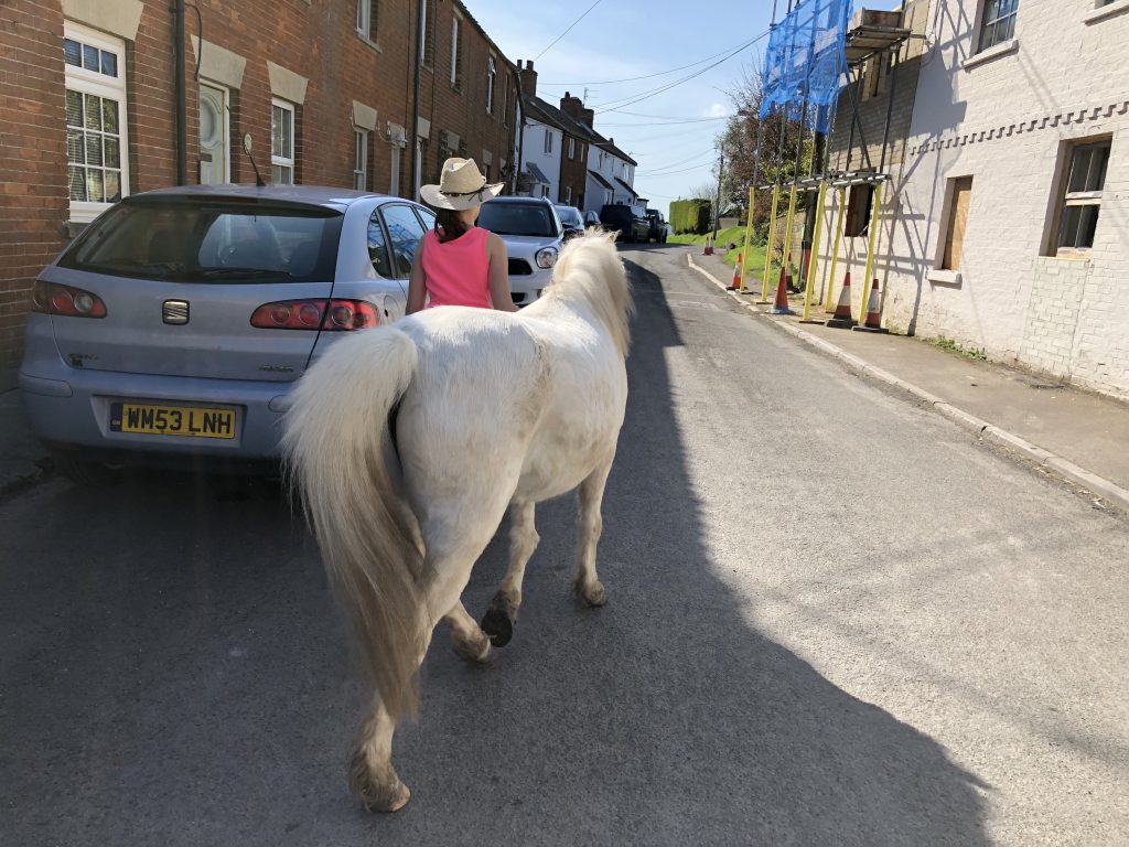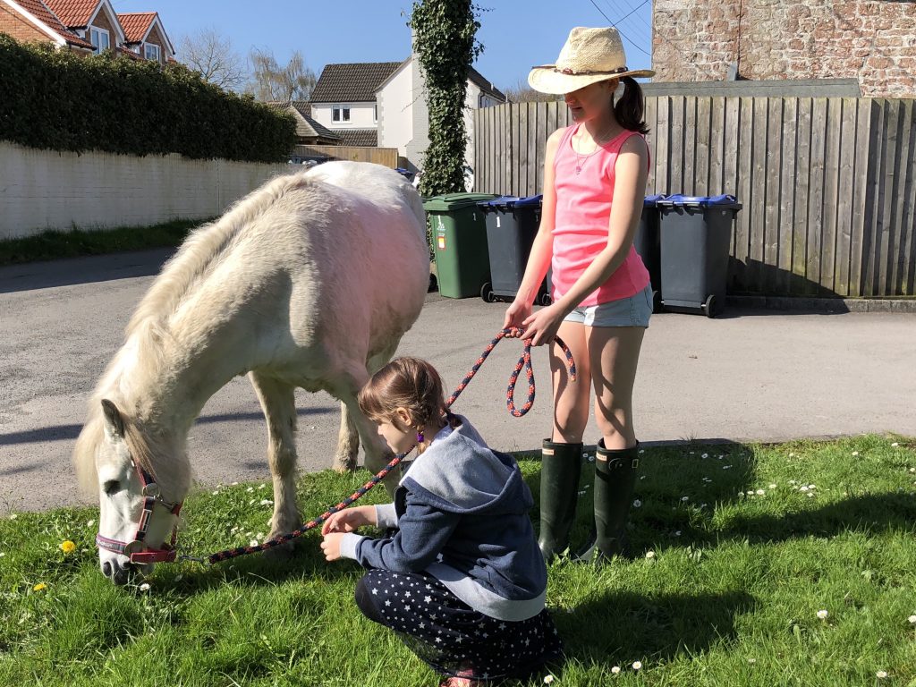 Emily was given the chance to lead him on the grass away from the road we let him stop and have a munch for a little while before moving on.