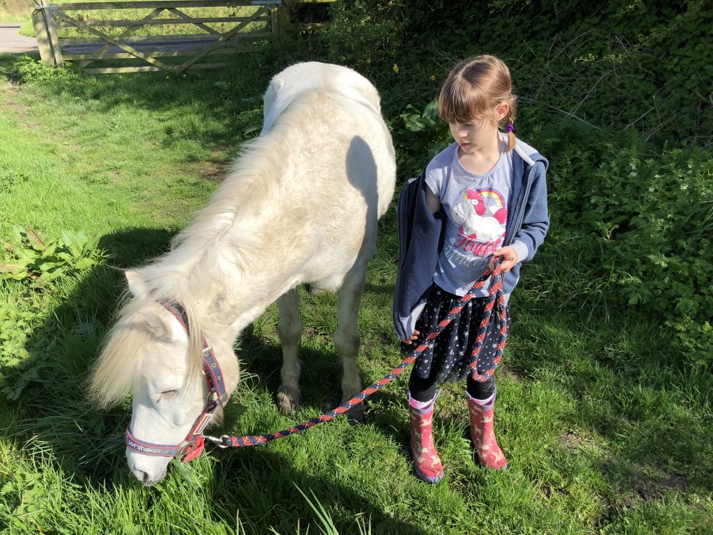 Emily was given the chance to lead him on the grass away from the road we let him stop and have a munch for a little while before moving on.