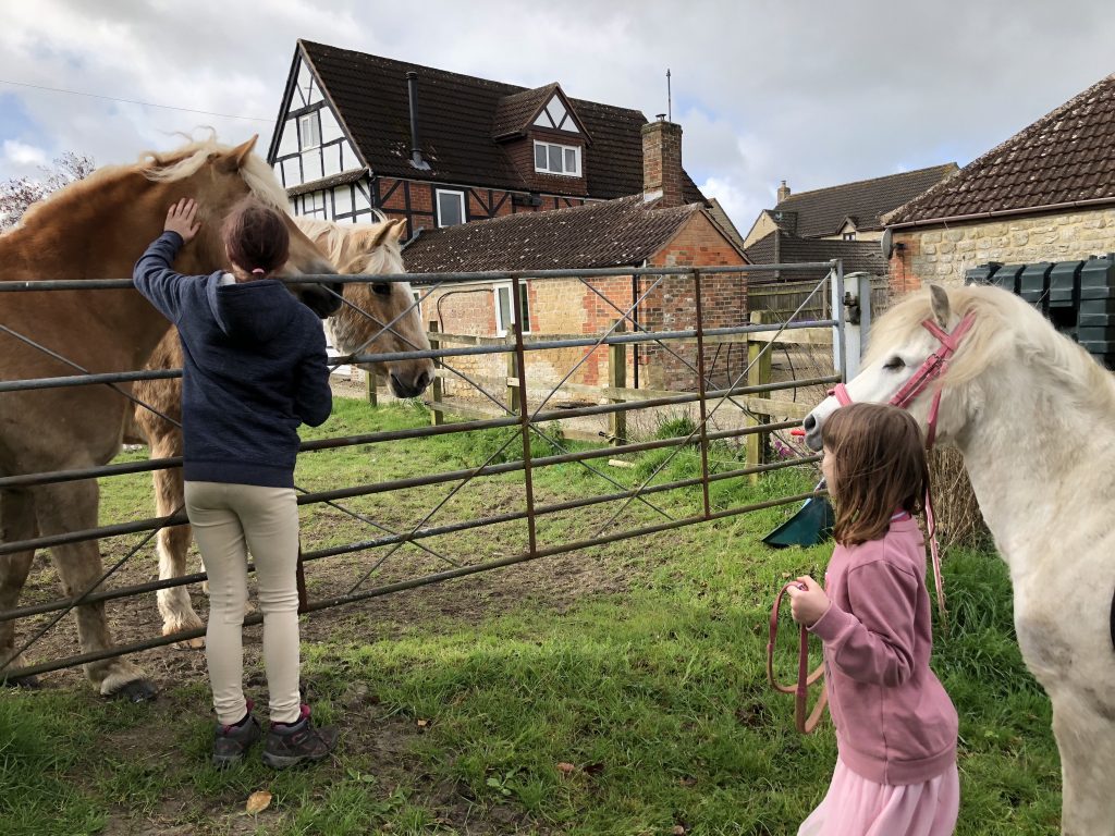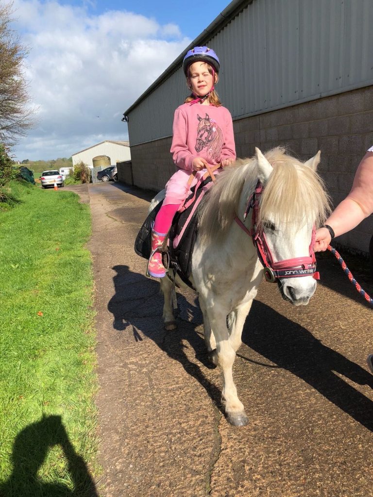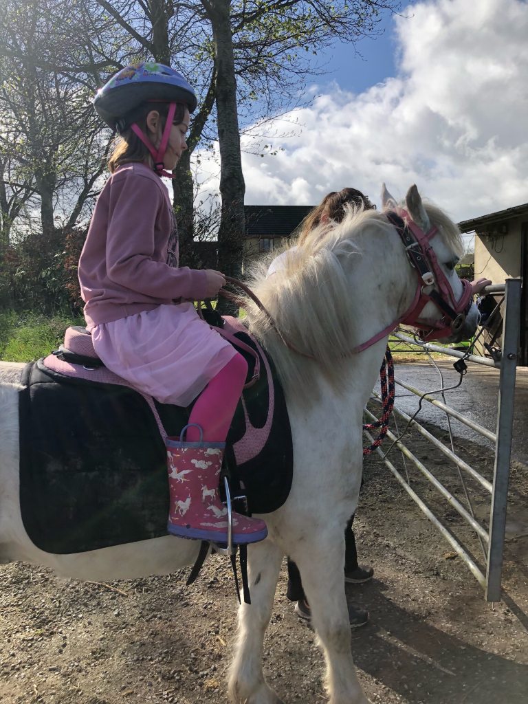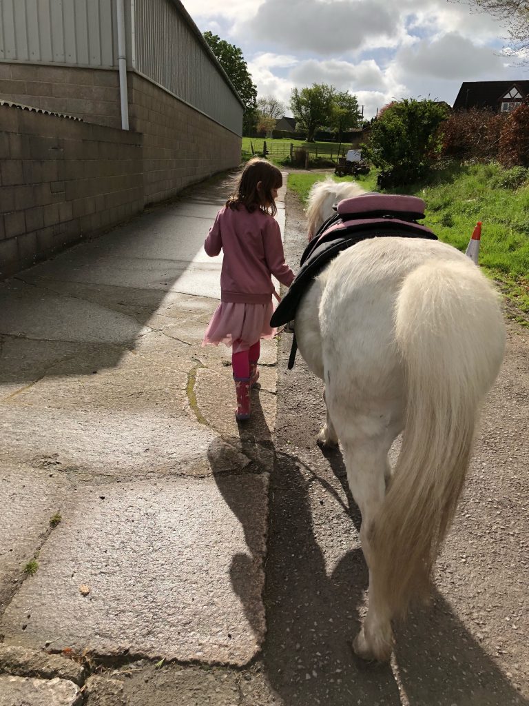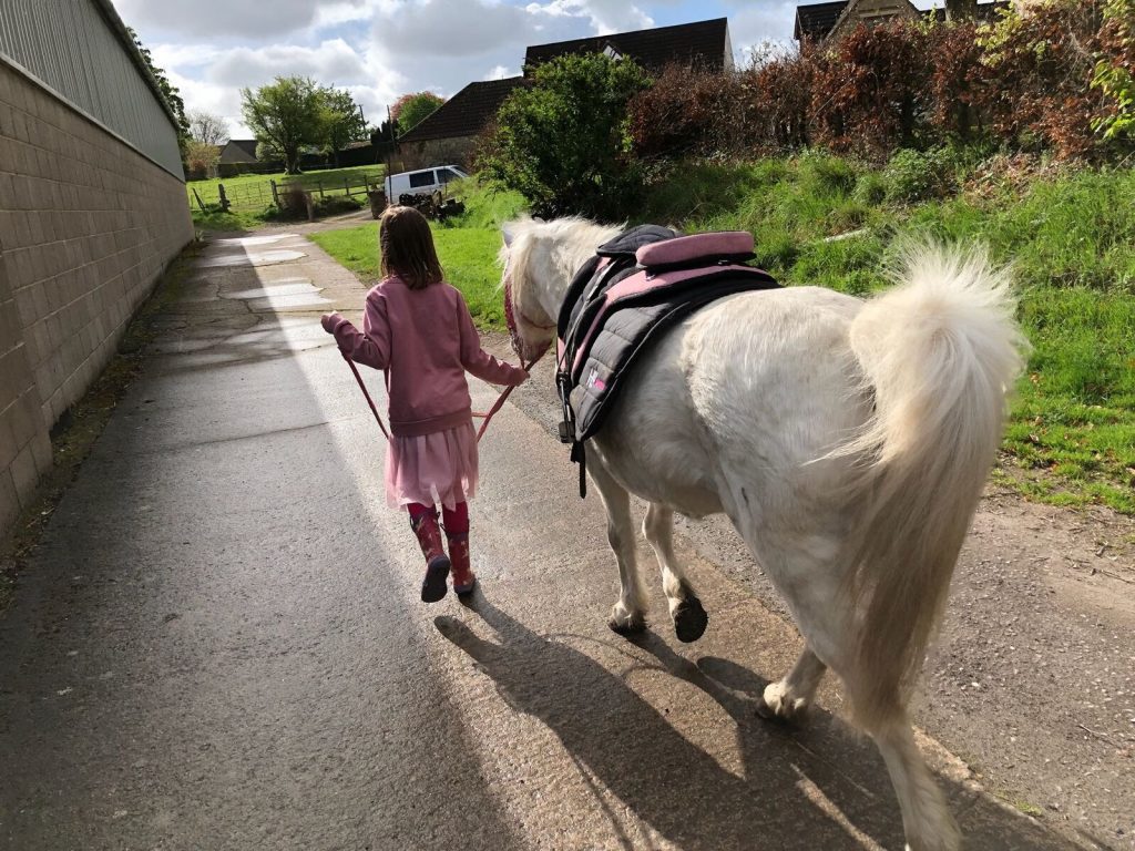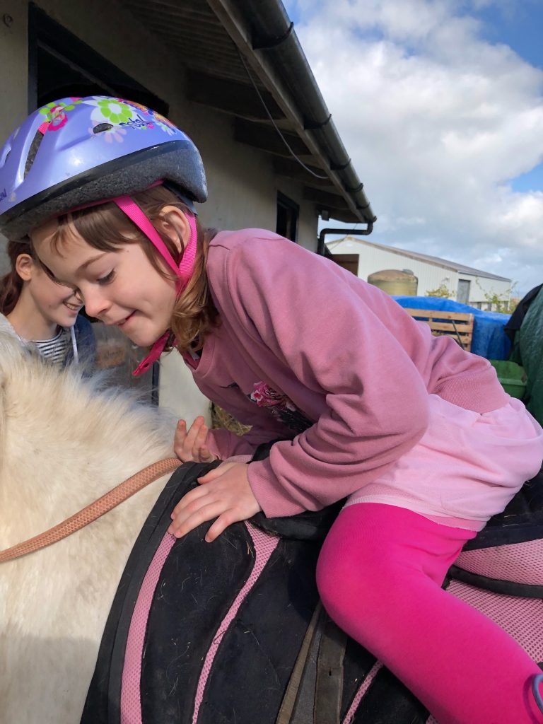 We mucked his stable and put him out in the field not before giving him a good groom and both emily and jessica had chances to lead him and emily a chance to have a little ride.
