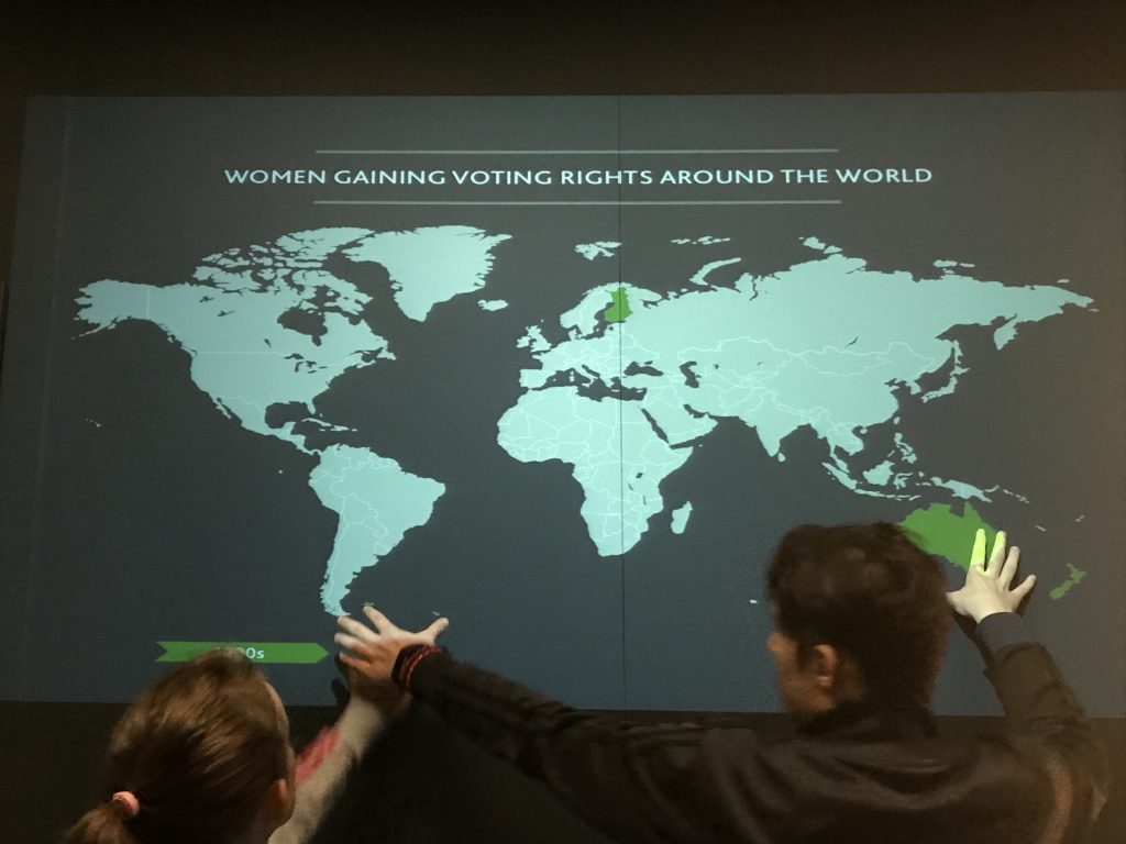 after the activities were over we went and walked around the museum bit they had which was all laid out about the suffragettes and how votes for women had grown across the world.