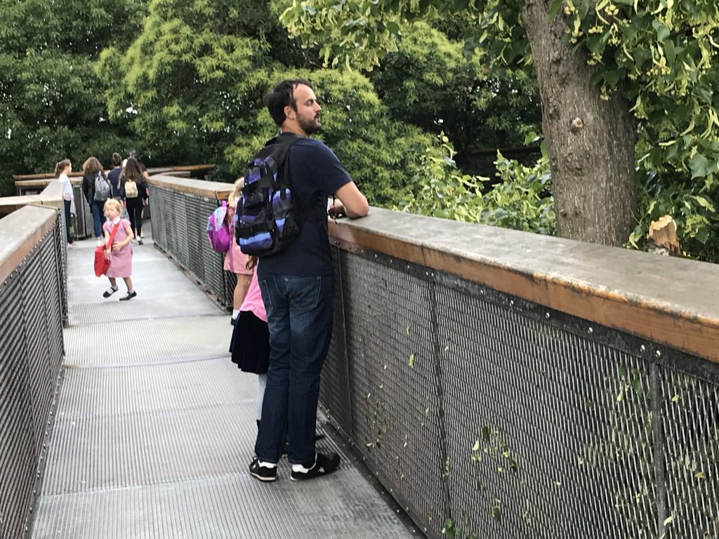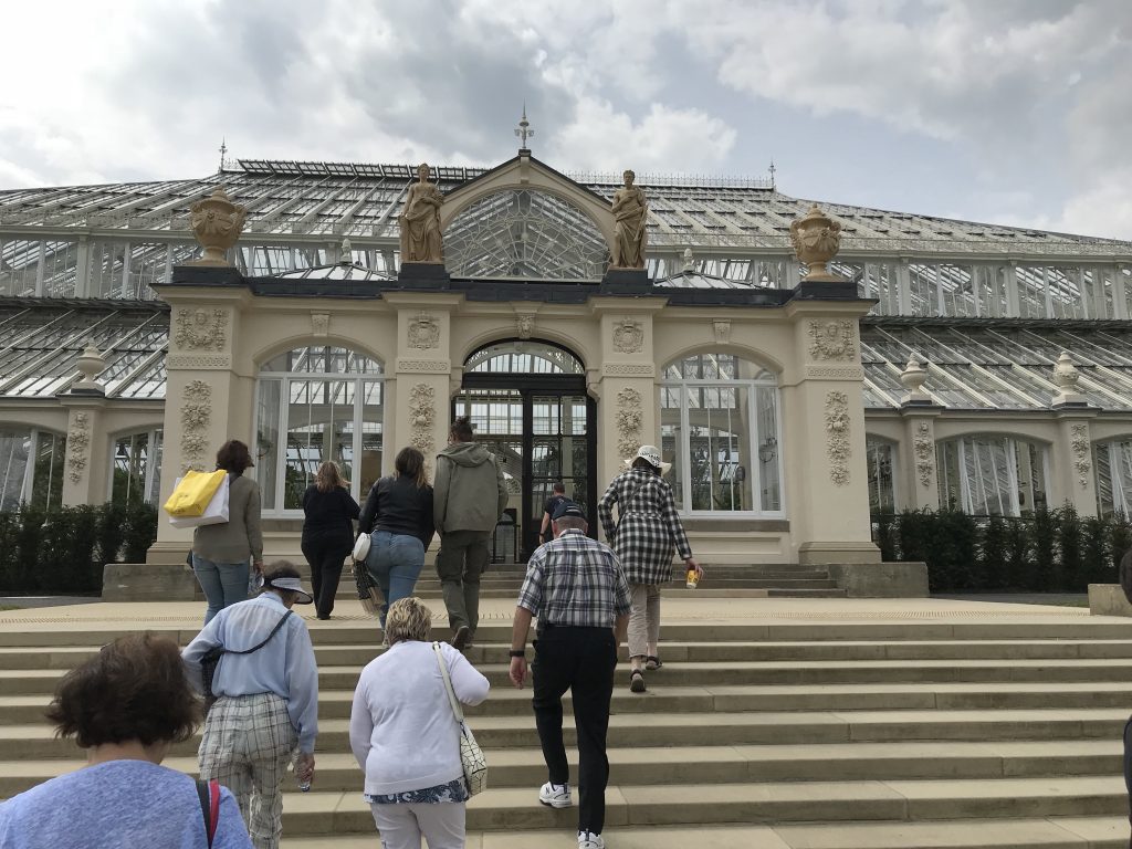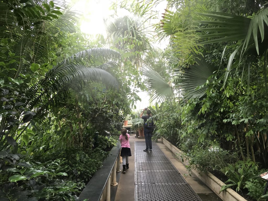 the kids listened in while the woman talked of the history of the place learning about the kings and queens who shaped the gardens but once inside the newly renovated green house they lost interest (as did I) as talk turned to plants but naturally Duncan was in his element so we left him to explore the higher level looking down over the planting. Tom quickly headed back down again when his fear of heights kicked in bless him but he came up not only here but also up the raised walkway!